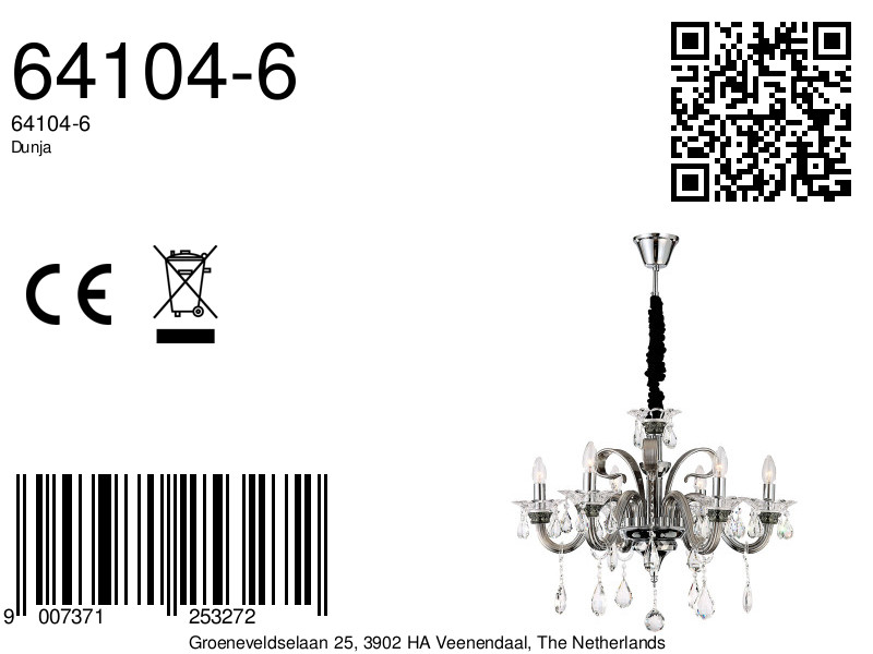 Betreed een wereld van verfijnde stijl met de Dunja-serie kroonluchter. Dit glanzende, verchroomde hanglicht, met een diameter van 70 cm, zorgt voor een opvallend accent in zowel modern als traditioneel interieur. De lamp is verfraaid met schitterende K9 kristallen en een bijpassende textielkabel voegt een extra vleugje elegantie toe. Daarnaast biedt deze kroonluchter plaats aan zes E14 lampen (max. 40W), waardoor je zelf de lichtintensiteit en kleur kunt selecteren, voor een perfecte sfeer naar wens.