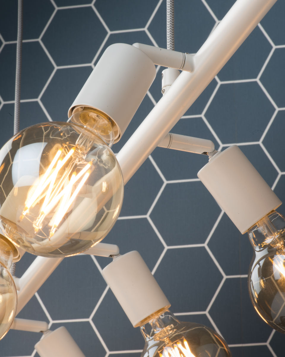 8-lichts stangvormige hanglamp wit van It’s About RoMi Miami. Deze lamp voegt een retro sfeer toe aan je eetkamer, kantoor of woonkamer. Geschikt voor E27 fitting en stofdicht (IP20). Exclusief lichtbron. Voor een moderne en stijlvolle touch in je interieur.