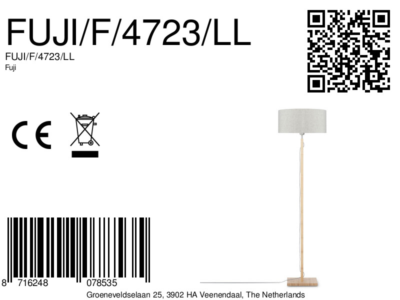 Bamboe linnen vloerlamp grijs Scandinavisch GOOD&MOJO Fuji