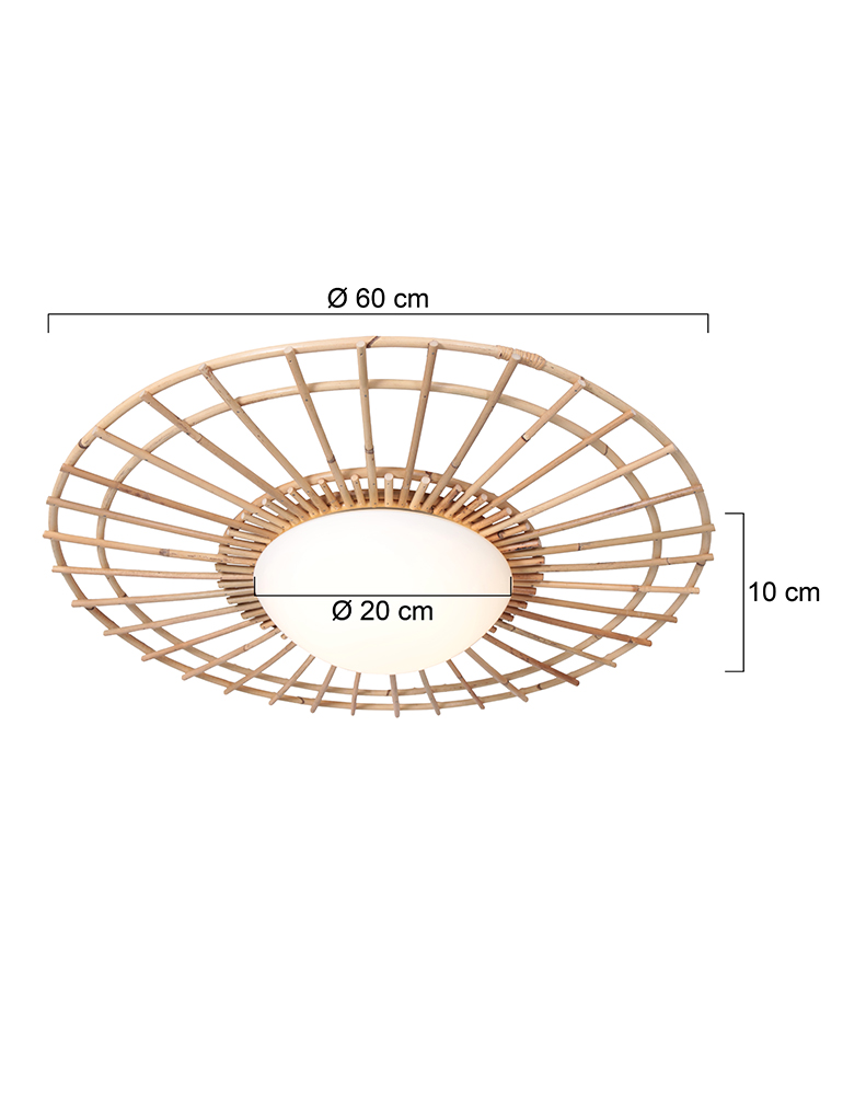Voor een landelijk of retro-interieur kies je deze plafondlamp van bamboe. Dankzij het opengewerkte ontwerp is het een lamp die niet alleen in de huiskamer goed tot zijn recht komt. Ook in de tienerkamer of in de hal is deze lamp een echte blikvanger. De witte bol zorgt voor voldoende licht.