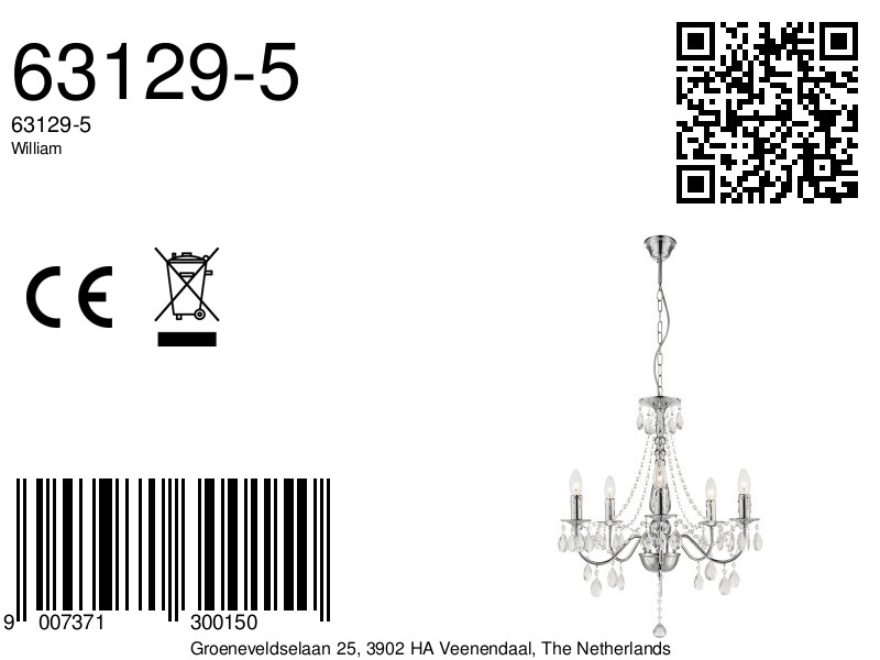 Ontdek de luxueuze allure van de William kroonluchter, een echte eyecatcher dankzij zijn stijlvolle design. Gemaakt om te imponeren, draagt het bij aan een verfijnd interieur met zijn schitterende acrylkristallen die het licht op een betoverende manier verspreiden. Deze bijzondere lamp biedt plaats aan vijf E14-lampen, die individueel tot 40 watt kunnen zijn. Voeg een vleugje elegantie toe aan elk ruimte met deze schitterende lamp.