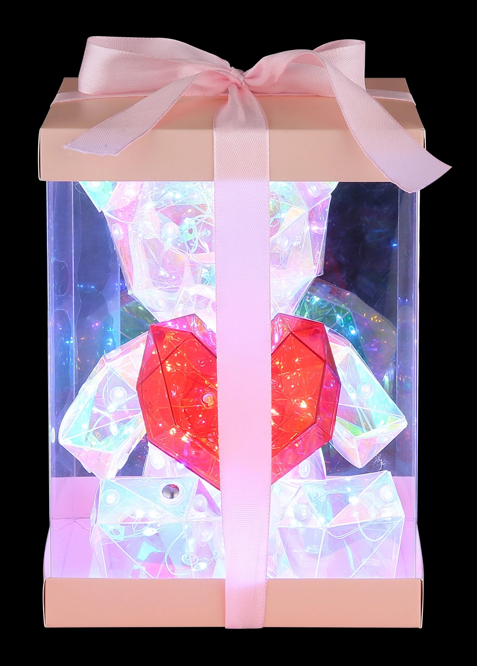 De BRONDAR tafellamp is een echte eyecatcher met een betoverend beer ontwerp. De lamp heeft een kristalachtige uitstraling en een rode lampenkap die zorgt voor een warm en comfortabel licht. Het heldere kunststof met een kristaleffect geeft de lamp een elegante, sprankelende look, waardoor deze een bijzondere sfeer creëert in de kinderkamer of andere ruimtes.