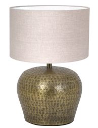 Bewerkte vaaslamp met beige kap Light & Living Gondia goud
