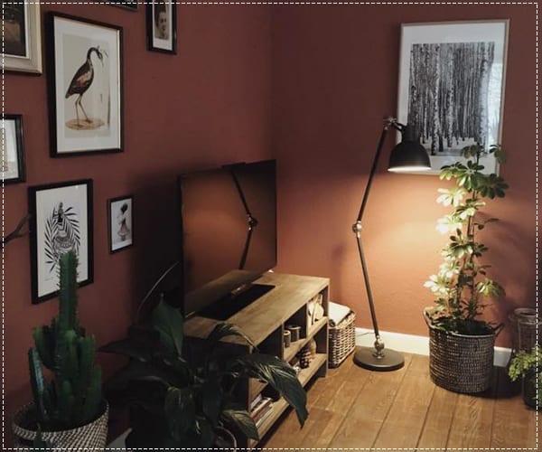 Zoals je op de afbeelding kan zien heeft Andrea een vrij donker interieur. Dit komt door de kleur op de muur. Deze kleur zorgt voor gezelligheid binnen het huis. Op de afbeelding kan je de industriële vloerlamp Cera zien. Door zijn uiterlijk past hij binnen ieder interieur. Weet je wat helemaal handig is? Je kan de vloerlamp naar eigen wens instellen. Zet hem net zoals Andrea naast je tv-meubel. Je kan er natuurlijk ook voor kiezen om hem naast je favoriete stoel of plekje op de bank te plaatsen. Je hebt sfeervol licht én je kan er gemakkelijk bij lezen. Benieuwd naar het Instagram account van Andrea? Typ op Instagram dan het volgende in: andrea_groot.
