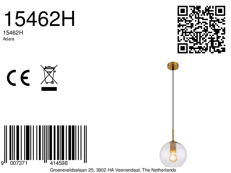 Verrijk uw interieur met deze hanglamp uit de Adara-serie, vervaardigd uit messingkleurig metaal en helder glas. Het bolvormige glas (ø 20 cm) hangt op een hoogte van 1,2 m en kan worden voorzien van een E27-lamp, waardoor u volledige controle heeft over lichtkleur en helderheid.