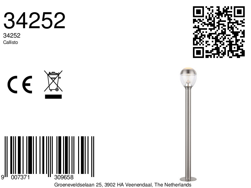 Bolvormige stalen klassieke buitenlamp Globo Callisto