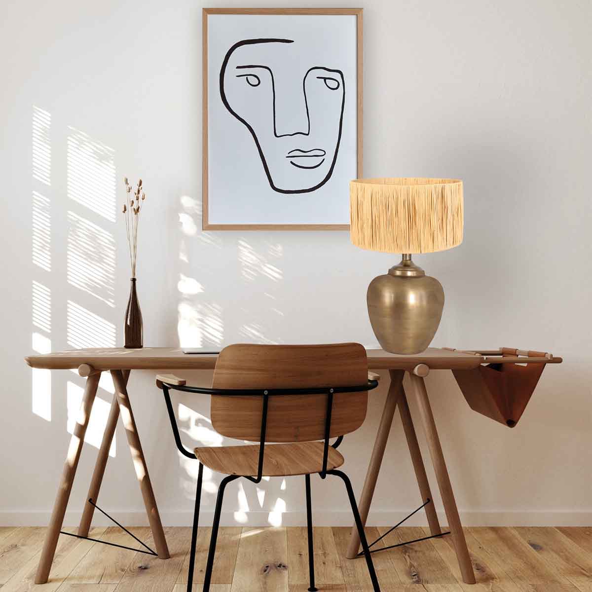 De bolvormige tafellamp uit de Brass-serie van Steinhauer straalt luxe en elegantie uit. De bronzen vaasvormige voet met een hoogte van 39 cm vormt een decoratief statement in elk interieur. Gemaakt van metaal en zeegras, biedt deze tafellamp een unieke combinatie van natuurlijke en klassieke elementen. De bijgeleverde naturel gras kap verspreidt een warme, sfeervolle gloed, waardoor deze lamp perfect is voor gezellige woon- en eetkamers.