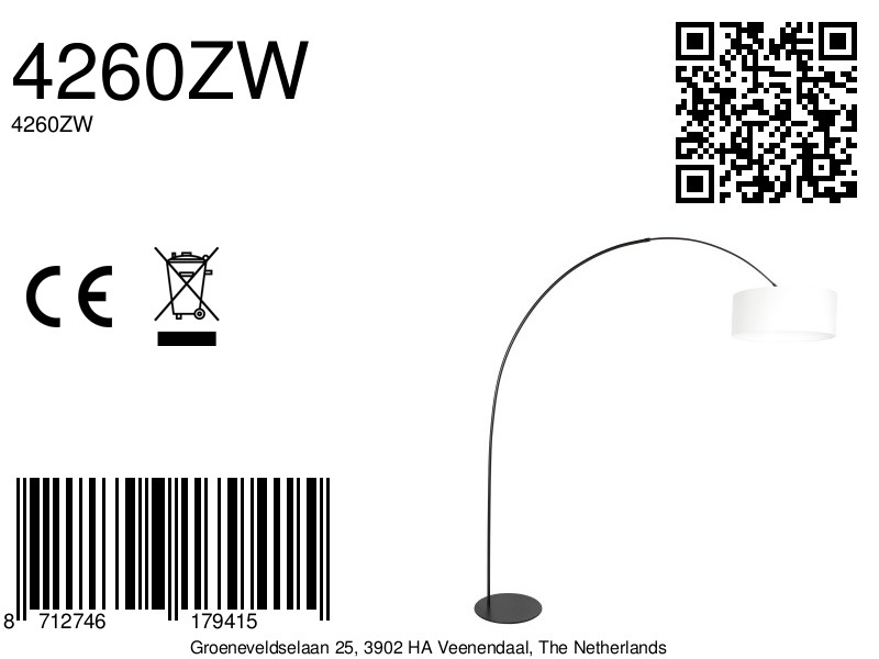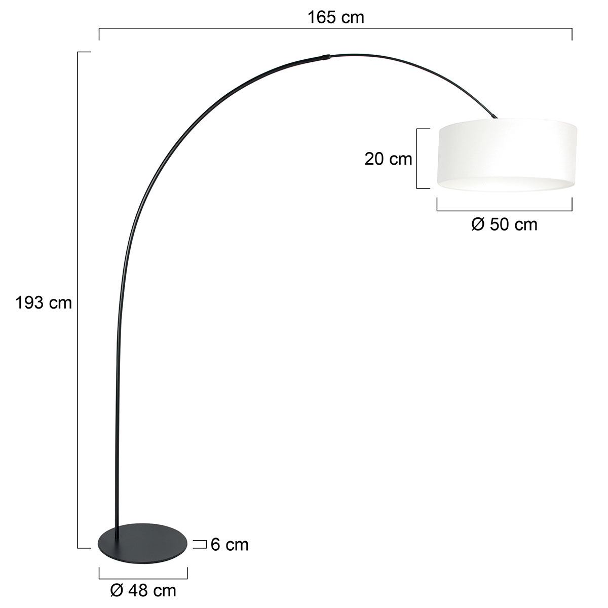 Met een hoogte van 210 cm en een reikwijdte van 48 cm biedt deze lamp zowel hoogte als stijl. De brede voetplaat zorgt voor een stabiele plaatsing en de E27 fitting geeft je de vrijheid om de gewenste lichtbron te kiezen. De bediening verloopt via een ingebouwde schakelaar in het snoer.