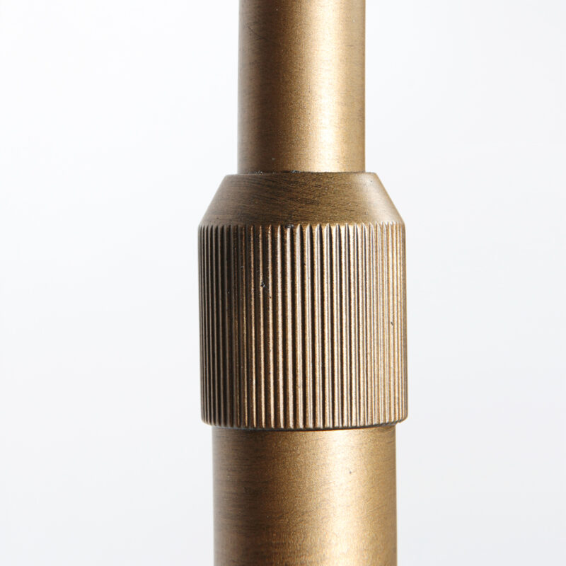 De vloerlamp is verstelbaar in hoogte van 210 tot 240 cm en heeft een stabiele voet van 45 cm breed. Het 250 cm lange snoer met voetschakelaar maakt het bedienen van de lamp eenvoudig. De kap van Ø50 cm en 20 cm hoog zorgt voor een zachte, warme lichtverspreiding in de ruimte.