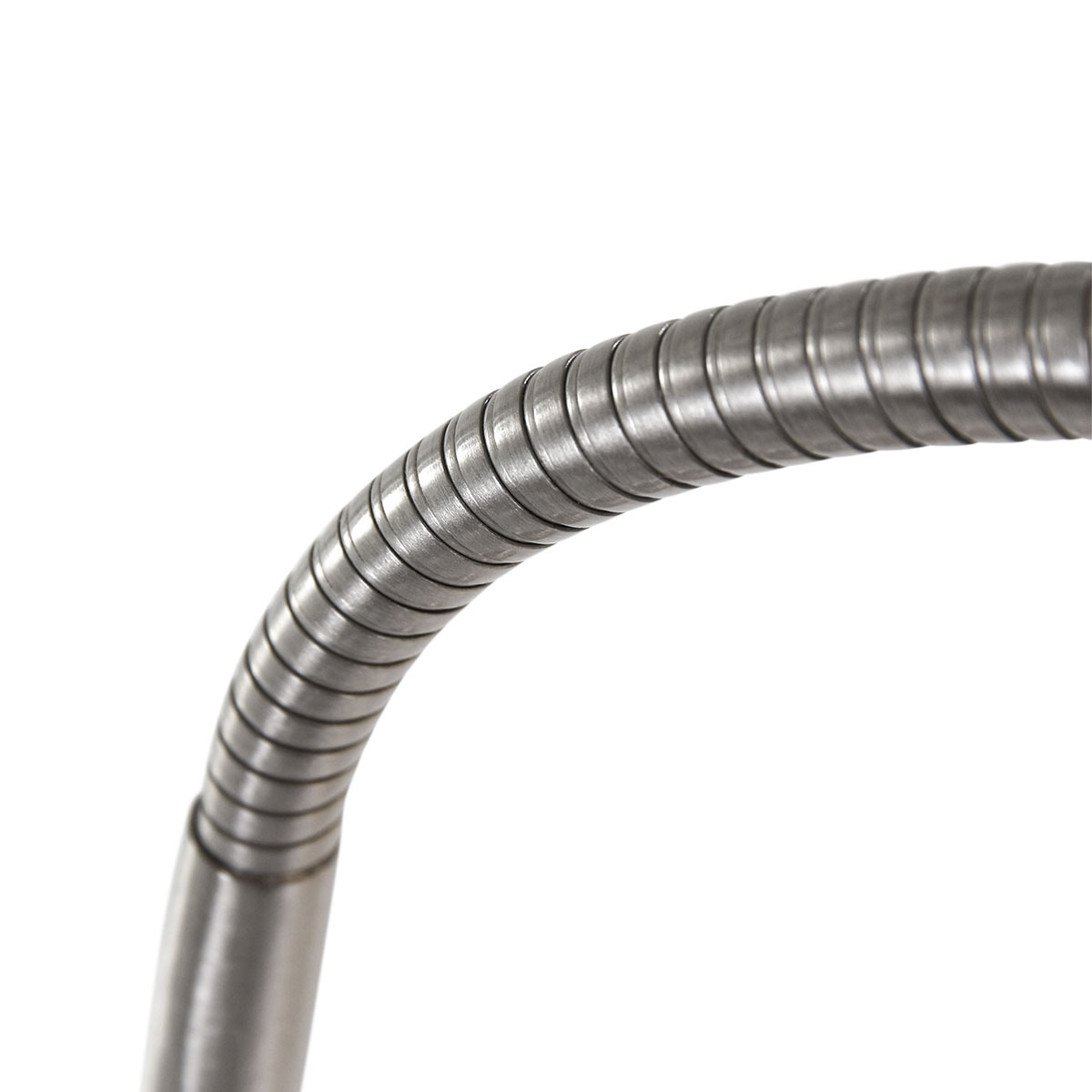 Deze staalkleurige tafellamp uit de Zenith-serie biedt flexibiliteit en stijl in één. De draaibare en kantelbare kap maakt het eenvoudig om de lichtbundel naar wens te richten. De lamp heeft een LED-module van 6 watt met een lichtopbrengst van 700 lumen. De lichtkleur is instelbaar tussen 2200 Kelvin (warm licht) en 4000 Kelvin (koel licht). Met de pushdimmer op de voet regel je eenvoudig de lichtsterkte. De hoogte is verstelbaar tot 42 cm en de voetplaat heeft een diameter van 15,5 cm. Het snoer van 165 cm maakt deze lamp geschikt voor verschillende ruimtes. Deze tafellamp van het merk Steinhauer wordt geleverd met 2 jaar garantie.