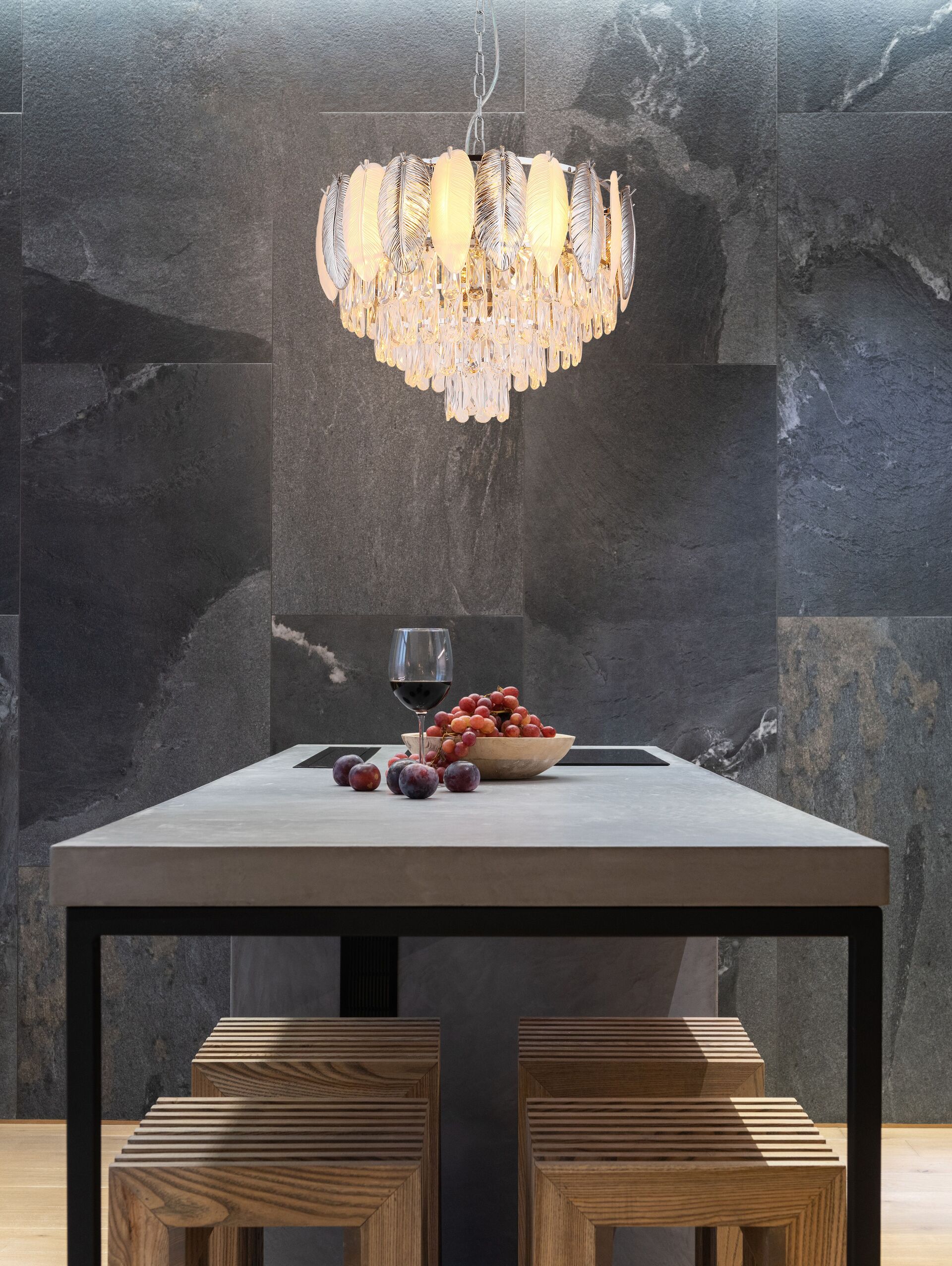 Chroom kroonluchter met kristallen decoratie Dalton