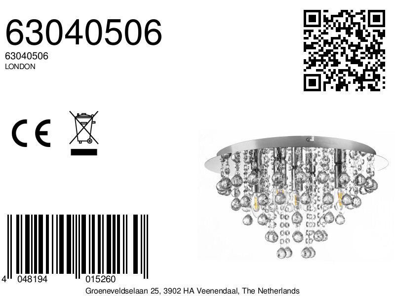 De LONDON plafondlamp in chroomgeplateerd metaal is een luxe toevoeging die elke ruimte naar een hoger niveau tilt. Met een diameter van 460 mm en een hoogte van 270 mm is deze lamp perfect voor moderne woonconcepten. Let op: de lamp wordt geleverd zonder de vijf E14-lampen, die elk een maximaal vermogen van 40W kunnen hanteren. De heldere acrylkristallen zorgen voor een indrukwekkende lichtreflectie en creëren een betoverend spel van licht in uw interieur.