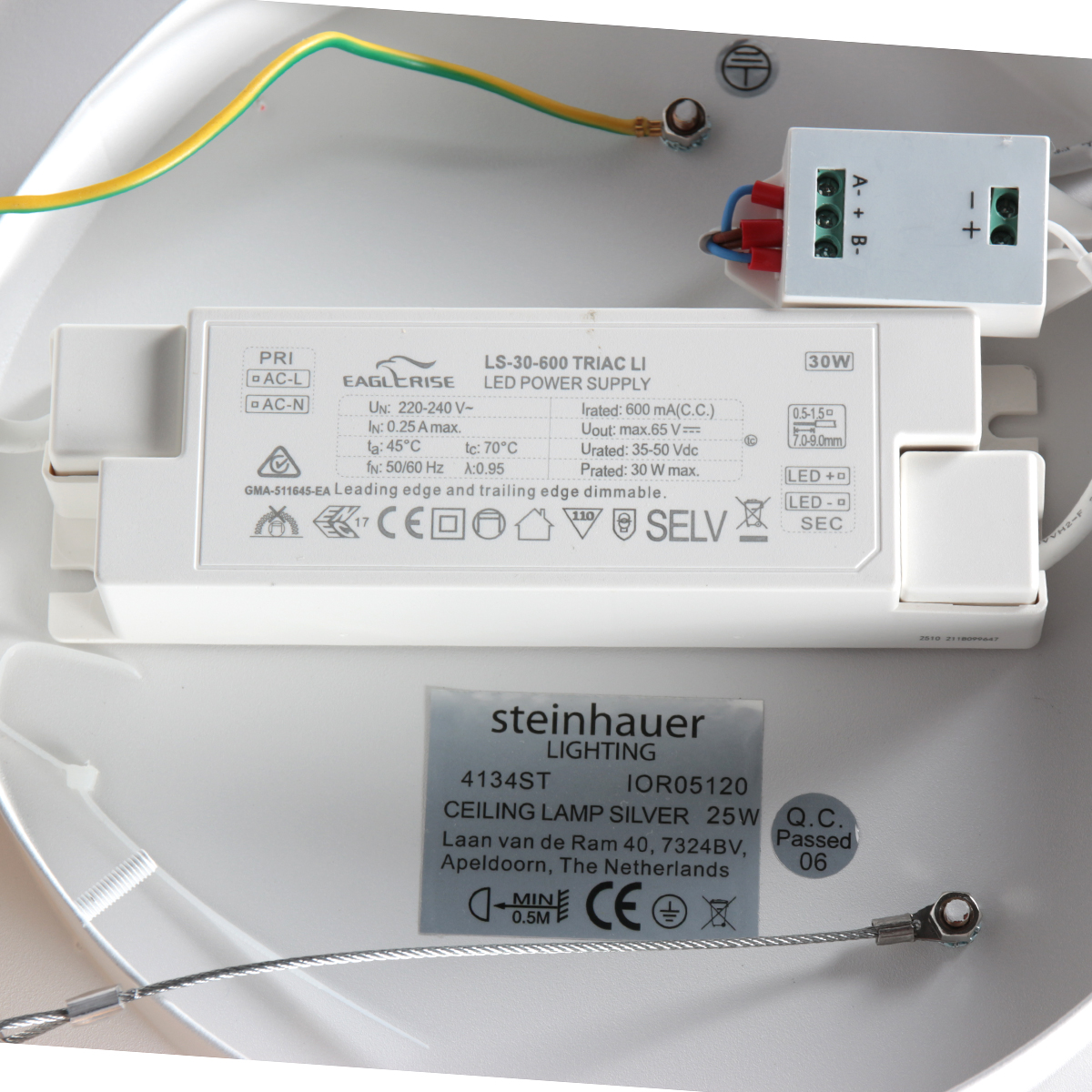 De Ringlux 4134ST is een compacte plafondlamp in geborsteld staal met een diameter van 30 cm. De ronde metalen behuizing en het vlakke ontwerp maken de lamp ideaal voor lagere plafonds of kleinere ruimtes zoals hal, slaapkamer of keuken. De ingebouwde LED ring van 20 watt levert ongeveer 2000 lumen aan direct licht, terwijl een extra LED ring van 5 watt naar boven schijnt en een zachte, indirecte gloed op het plafond creëert.