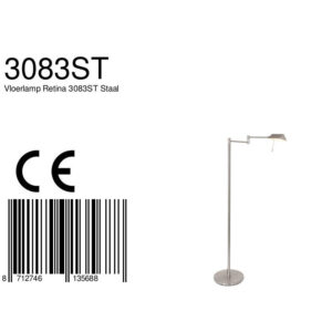 De Retina vloerlamp in staal is een stijlvolle toevoeging aan moderne interieurs. Met een vervangbare 10 Watt LED-module en een lichtopbrengst van 1000 lumen biedt deze lamp zowel functioneel als sfeervol licht. De dim to warm functie stelt je in staat om de kleurtemperatuur tussen 2200 en 4000 Kelvin in te stellen. De pushdimmer op de buis maakt bediening eenvoudig. De hoogte is verstelbaar van 110 tot 125 cm, met een voetdiameter van 22,5 cm en een leesarm met een reikwijdte van 60 cm. Wordt geleverd met een 200 cm snoer.