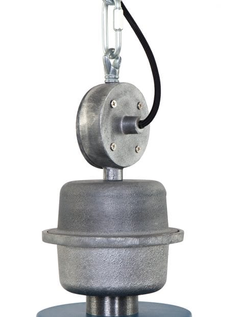 Industriële petrolkleurige hanglamp uit de Bikkel-serie, uitgevoerd in een diepe blauwgroene tint met ruw geschuurde details. De robuuste metalen kap van 42 cm doorsnee geeft een stoer en vintage karakter aan de ruimte. De totale hoogte, inclusief transformatorblok, bedraagt 45 cm en de lamp is verstelbaar tot maximaal 150 cm. Dankzij de ingebouwde blender wordt het licht sfeervol verspreid zonder verblinding. Een eyecatcher boven de eettafel of in de woonkamer.
