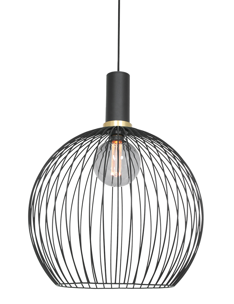 De Aureole 45 cm hanglamp combineert modern design met een luxe uitstraling. De open bolvormige kap is gemaakt van zwarte metalen draden, en de gouden ring aan de bovenzijde geeft een chique touch. Voorzien van een E27 fitting en geschikt voor lichtbronnen tot 40 Watt. De hoogte is verstelbaar tot 170 cm, waardoor je hem op de gewenste hoogte kunt hangen. De lamp wordt geleverd met een zwarte en een gouden ring, zodat je de uitstraling kunt aanpassen. Dimbaar in combinatie met een muurdimmer en een geschikte lichtbron.