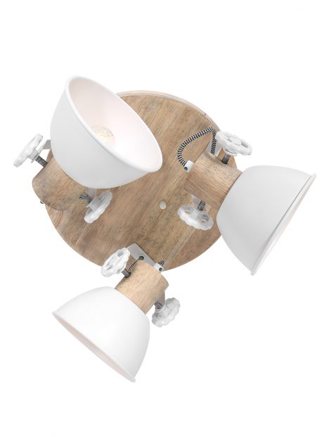 Blikvanger! Op een houten plafondplaat zitten drie witte spots bevestigd. Maar dat is niet alles. De richtspots hebben houten fittinghouders boven op hun kapjes! De elektriciteitsdraden zijn met zwart-wit katoen omwikkeld. Met grappige tandwielen kun je de spots richten op jouw favoriete schilderij of poster. Wij zien een gouden toekomst voor deze gave “Gearwood” van Mexlite in jouw slaapkamer, woonkamer of kinderkamer.