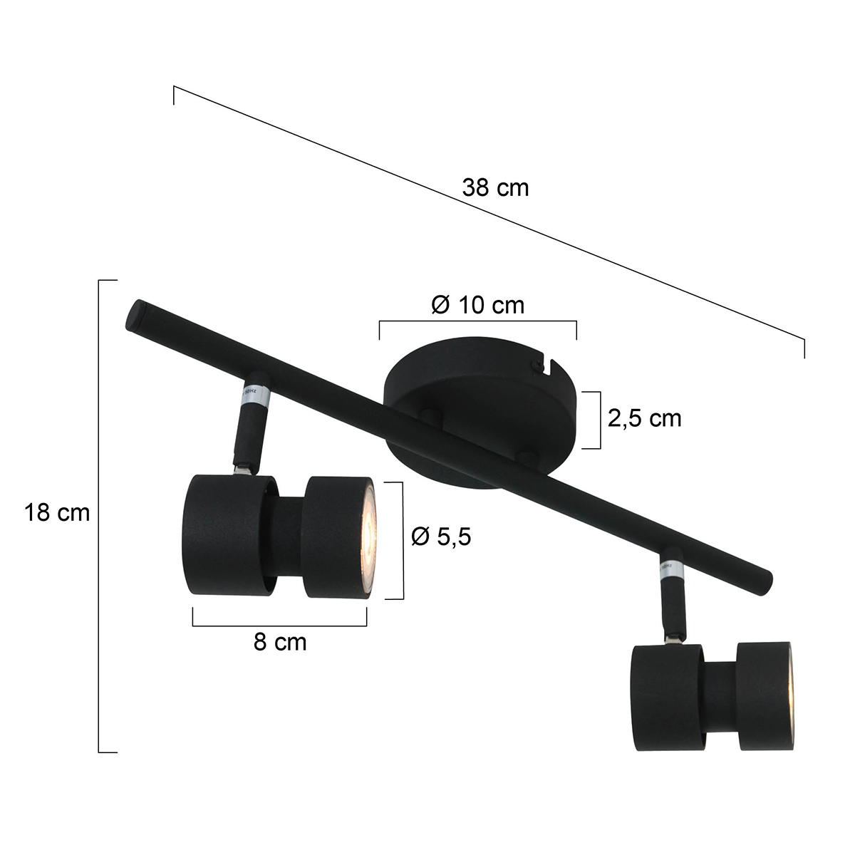 De moderne zwarte 2-lichts plafondspot Natasja van Steinhauer is een stijlvolle en functionele toevoeging aan elk interieur. Deze plafondspot heeft twee verstelbare spotkoppen en is voorzien van GU10 lichtbronnen met dim-to-warm technologie, ideaal voor het creëren van de juiste sfeer.
