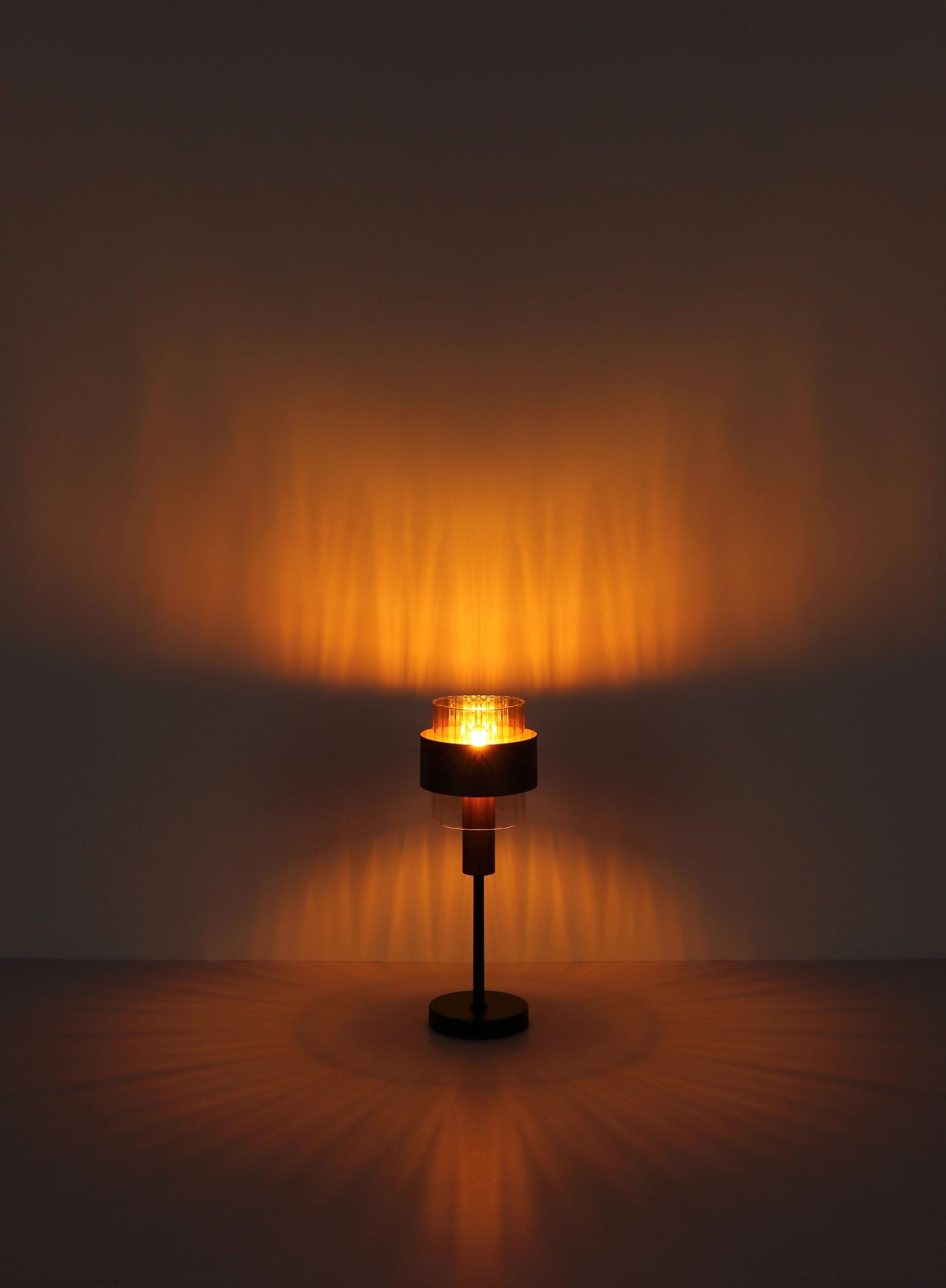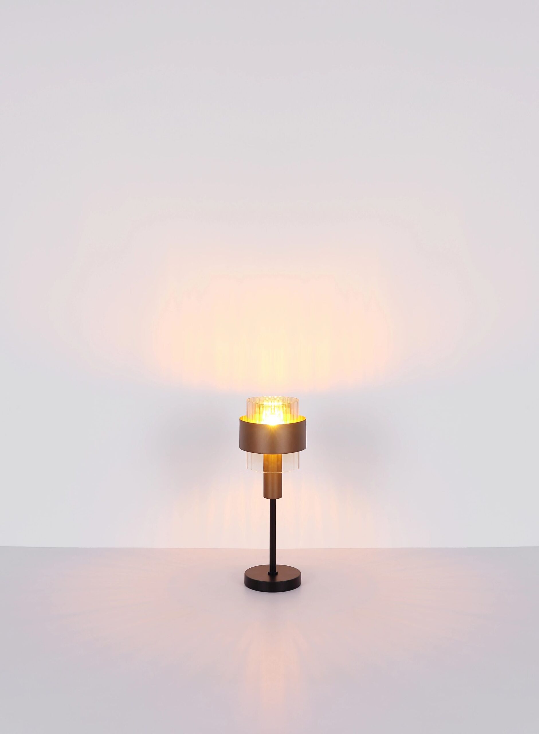 De MILLEY tafellamp is een prachtig accessoire dat stijl en elegantie toevoegt aan elke tafel. Met een rond ontwerp van glas, omringd door een luxueuze bronzen ring, straalt deze lamp een verfijnde uitstraling uit. De gebogen vorm zorgt voor een harmonieuze silhouette die perfect aansluit bij uw interieur. De solide metalen constructie, afgewerkt in een matte zwarte kleur, biedt niet alleen duurzaamheid maar ook een strakke look. De glazen lampenkap in een warme amberkleur heeft een heldere, vervagende bekleding die een sfeervolle ambiance creëert.