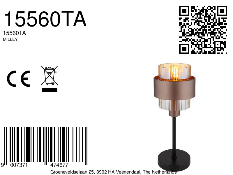 Bovendien is de MILLEY tafellamp ontworpen met gebruiksgemak in gedachten. De metallic ring rond de lampenkap is vervaardigd in een stijlvolle bronzen uitvoering, wat bijdraagt aan de algehele luxe uitstraling. Dankzij de praktische rocker-schakelaar op de kabel kunt u de lamp eenvoudig bedienen. Geef uw interieur een vleugje elegantie en stijl met de MILLEY tafellamp, die zowel een functioneel als esthetisch element toevoegt aan uw woonruimte.