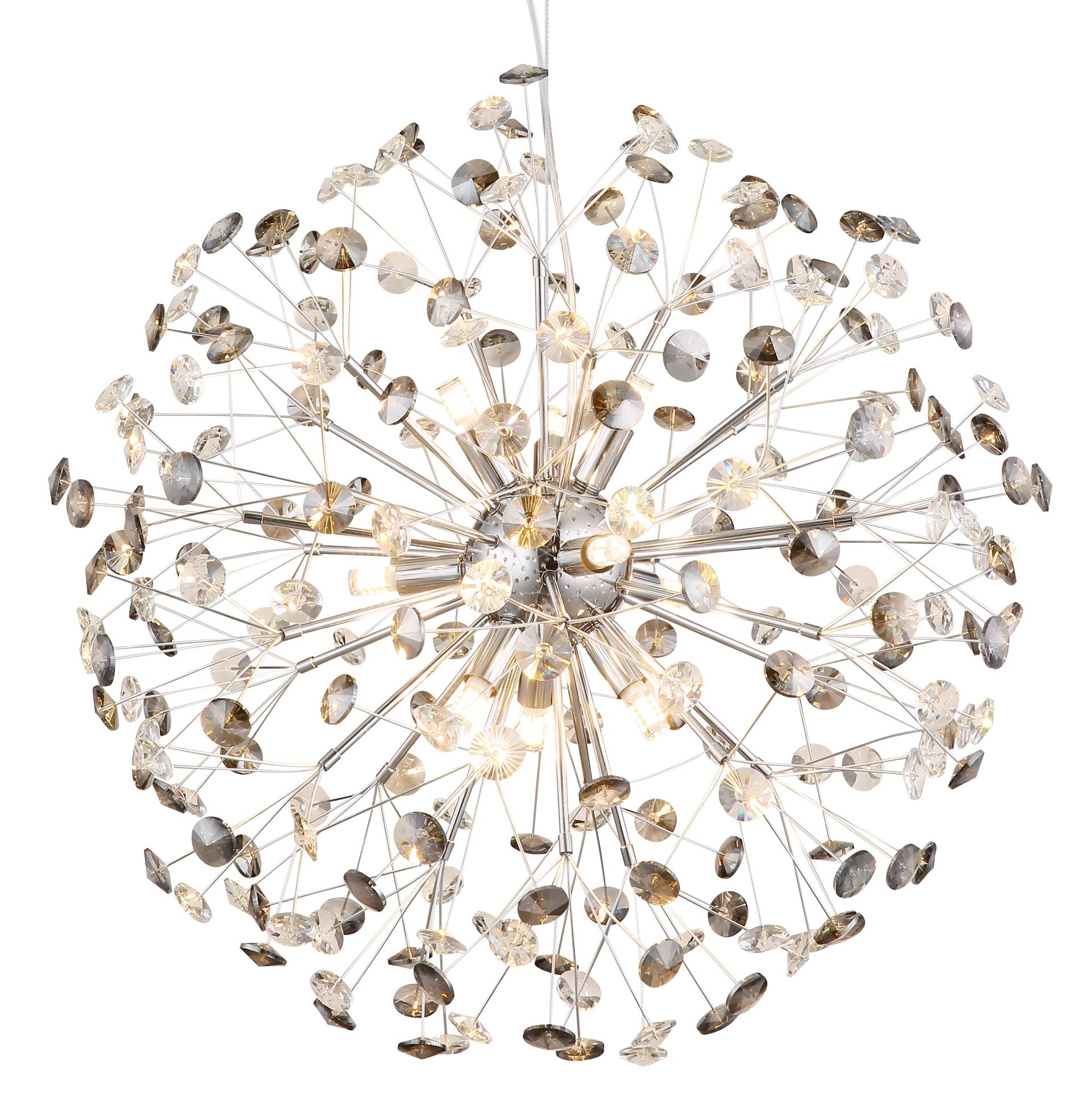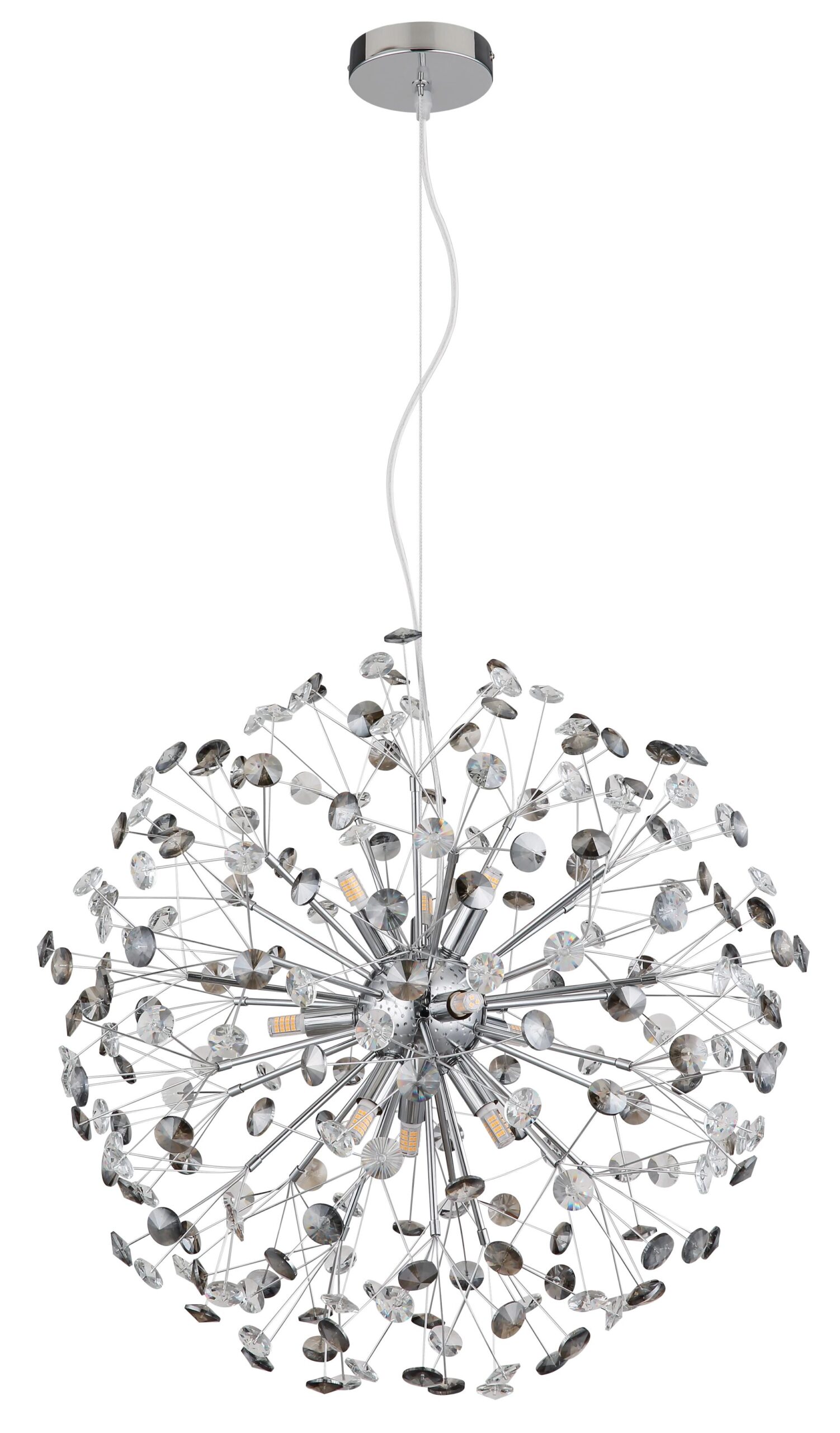 De elegante chandelier “KATRINA” belichaamt de perfecte mix van klassiek design en moderne flair. Met zijn ronde metalen lichaam, afgewerkt in chroom, en de prachtige, bolvormige lampenkappen van K9 kristal in een verfijnde rook- en heldere tint, voegt deze lamp een luxe uitstraling toe aan elke ruimte. De “KATRINA” is uitgerust met negen G9 LED-lampen, die een warme lichtkleur van 3000K en een lichtopbrengst van 350 lumen bieden. Dit zorgt voor een gezellige en uitnodigende sfeer in uw interieur.