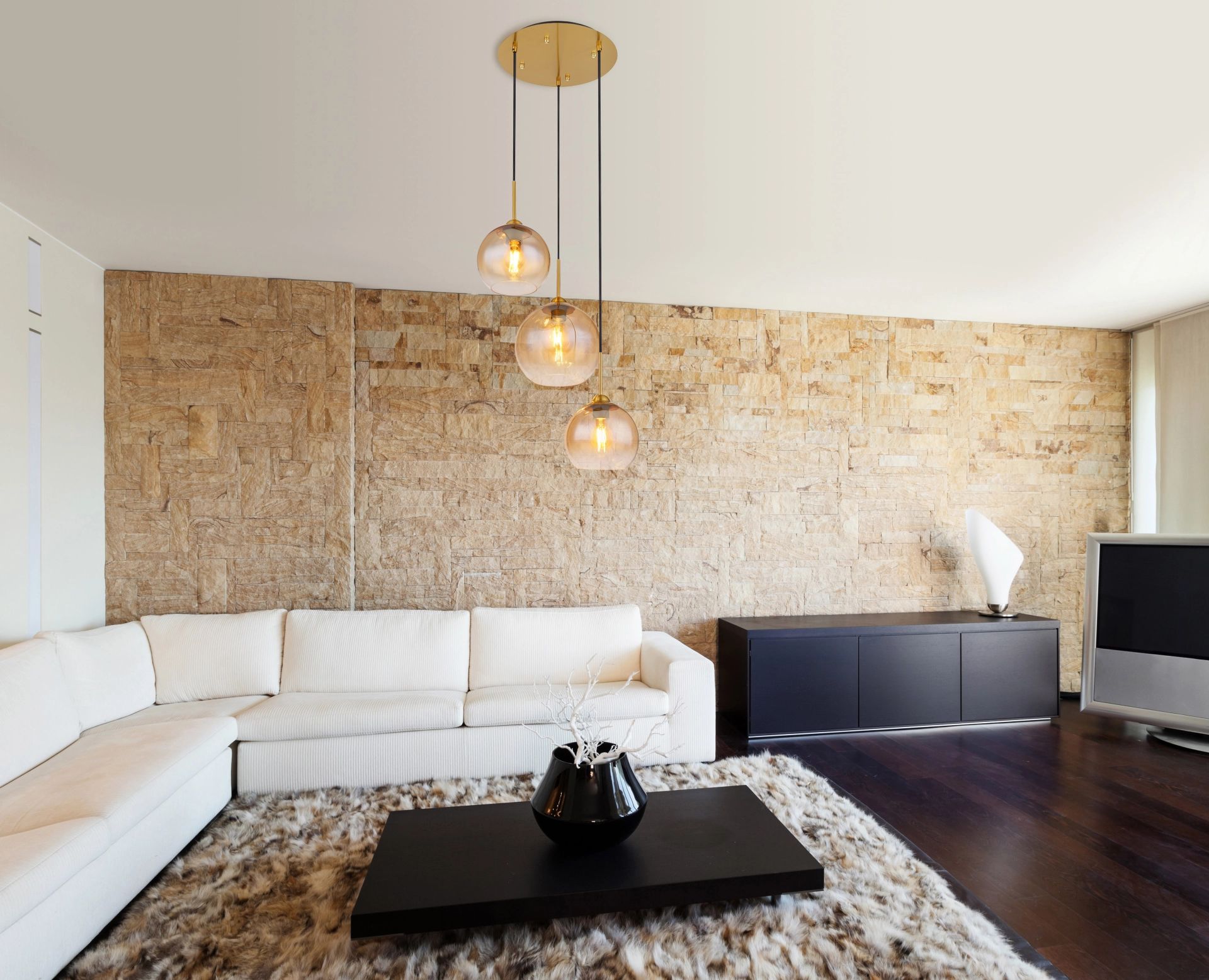 Elegante hanglamp met amberkleurige glazen kappen Jamessa
