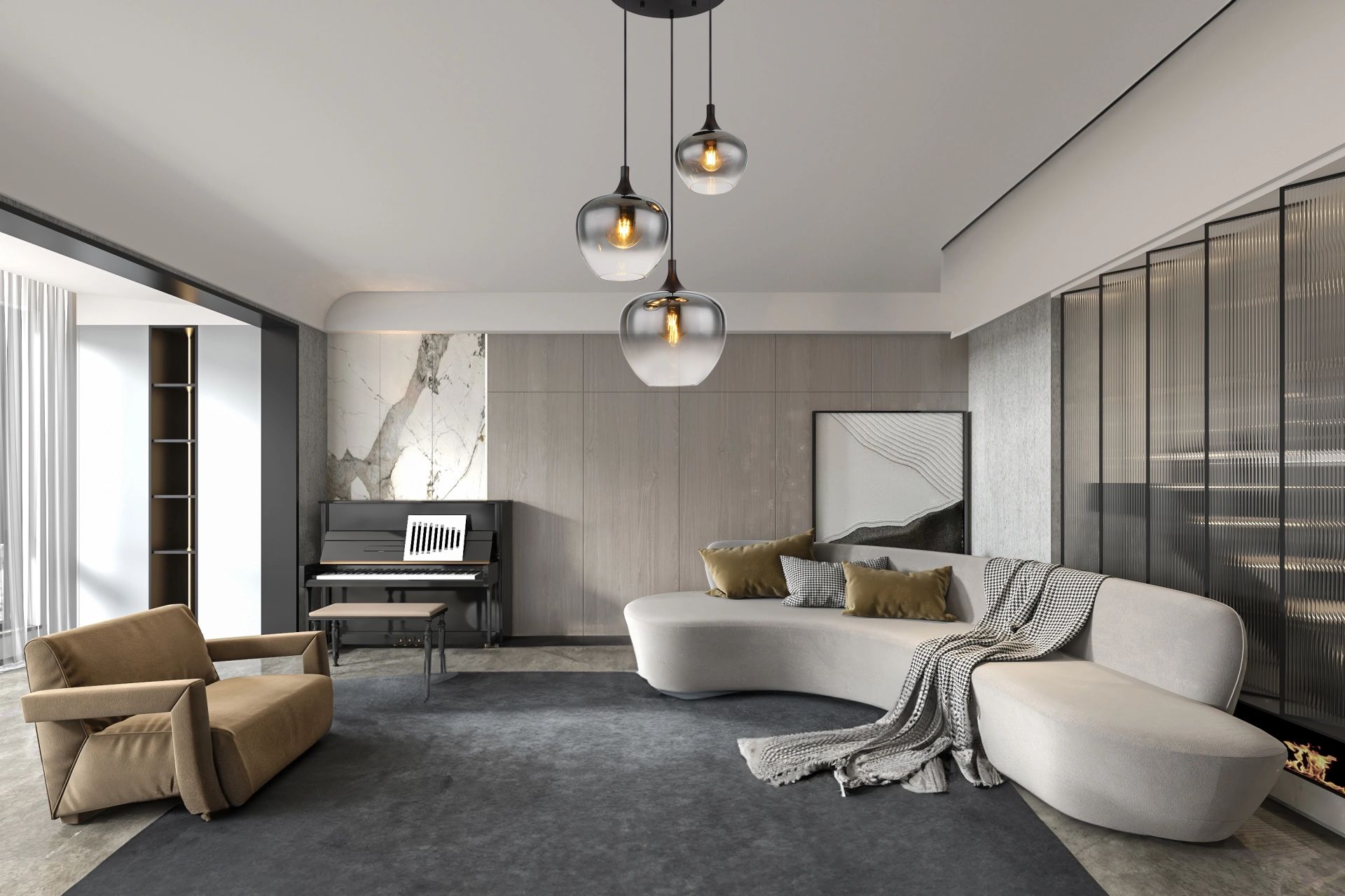 Deze unieke hanglamp is een ware blikvanger voor elke kamer. Met een ronde plafondbevestiging van 30 cm beginnen drie kabels die variëren in lengte tot 1,2 meter. Aan het einde van deze kabels bevinden zich elegante E27-fittingen, elk met een fraaie rookglazen kap die voor een warm en sfeervol licht zorgt. De E27-fitting biedt je de mogelijkheid om jouw voorkeur voor lichtkleur en helderheid te bepalen, met een maximaal vermogen van 40 watt. Voor een milieuvriendelijke en energiezuinige keuze bevelen wij het gebruik van LED-lampen aan.