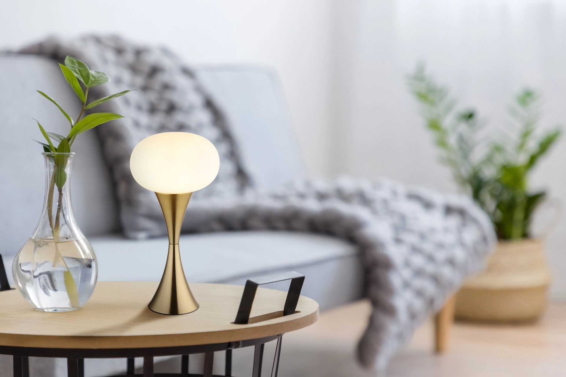 De RONALD tafellamp is een verfijnd accent voor elk interieur, met zijn elegante kopvorm die onmiddellijk de aandacht trekt. Het metalen lichaam in een stijlvolle messingkleur combineert perfect met de opaalwitte glazen kap, wat zorgt voor een moderne uitstraling die in diverse omgevingen tot zijn recht komt. De lamp is eenvoudig te bedienen dankzij de handige rocker schakelaar op de kabel.