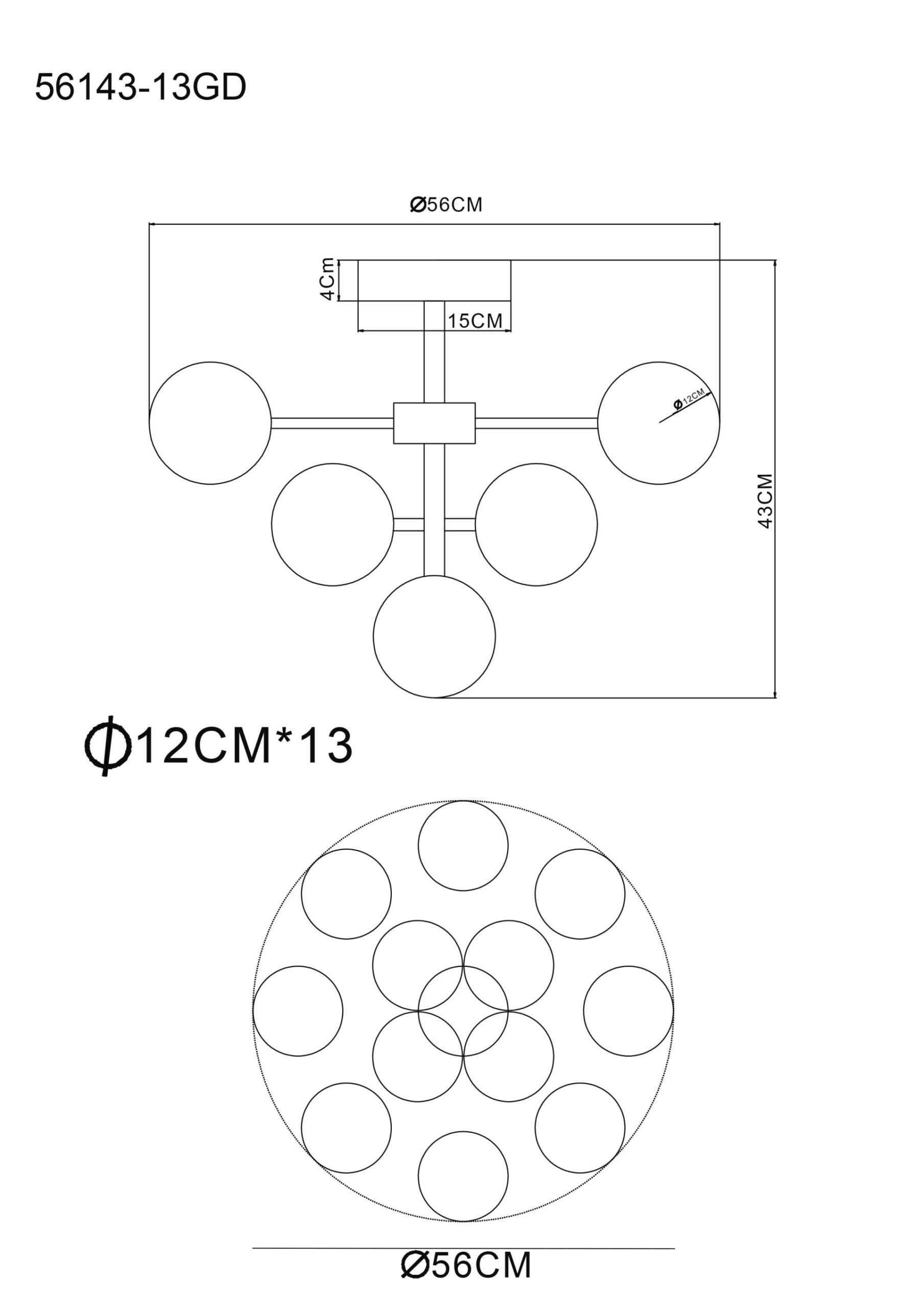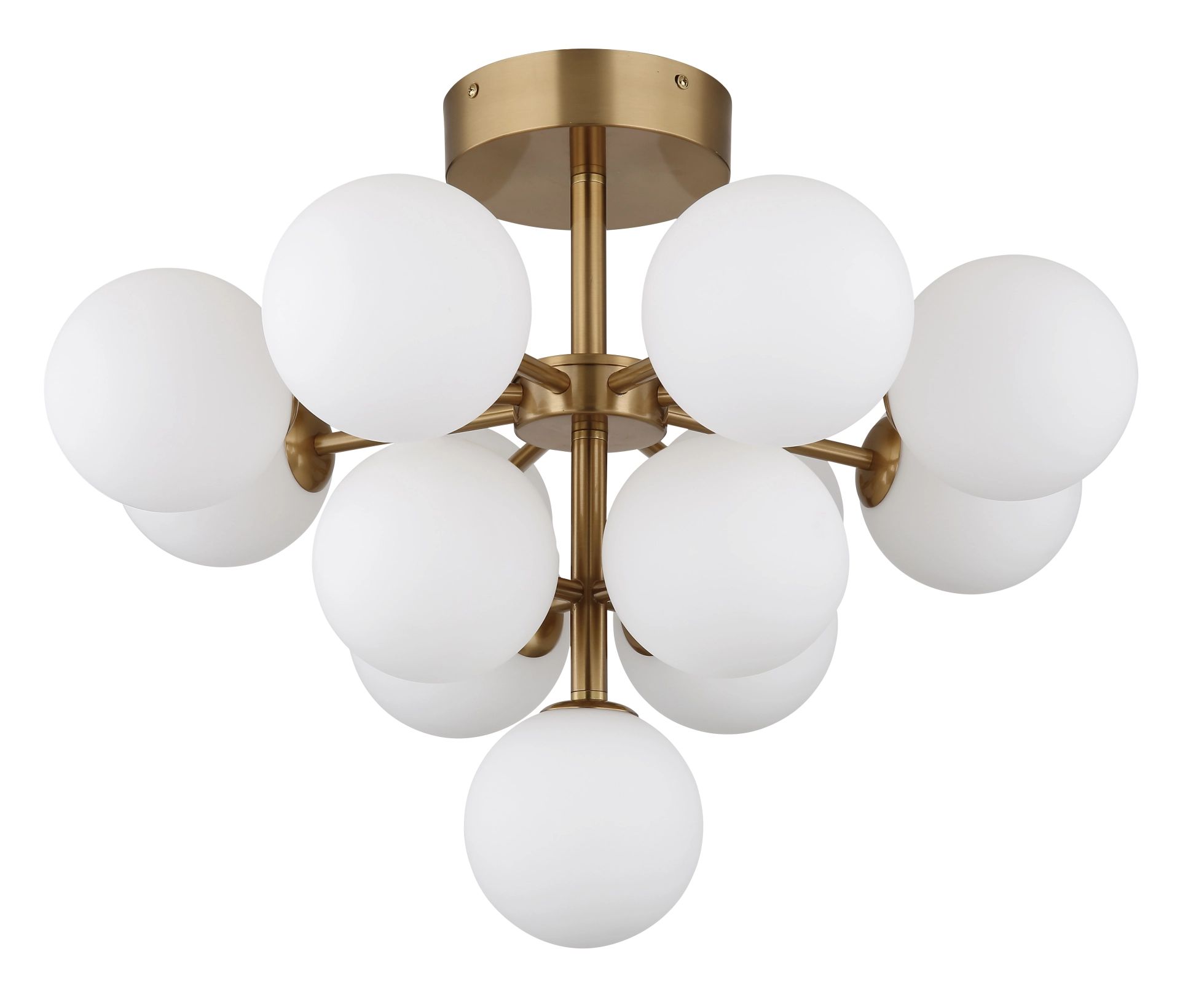 Deze elegante plafondlamp creëert een luxe ambiance in elke ruimte dankzij zijn glamoureuze ontwerp en opaal-kleurige glazen bollen. Het frame van mat goudkleurig metaal in combinatie met de opaal-kleurige glazen sferen geeft een chique en stijlvolle uitstraling. Met een diameter van 560 mm is deze plafondlamp uitgerust met maar liefst 13 geïntegreerde G9 LED-lampen, die een krachtige lichtopbrengst van 5W bieden.