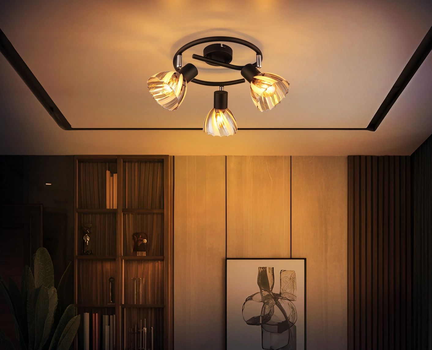 De ZACHERY spotlight in het e-Shape design trekt onmiddellijk de aandacht door zijn elegante vorm en verfijnde materiaalcombinatie. De ronde kap van rookkleurig, satijnmatig glas is versierd met decoratieve groeven, wat zorgt voor een zachte en gelijkmatige lichtverdeling. Dit maakt de spotlight tot een perfecte aanvulling voor stijlvolle accenten in uw interieur. De behuizing van zwart, mat metaal en chroom geeft de ZACHERY een moderne en elegante uitstraling die moeiteloos aansluit bij hedendaagse woon- en werkomgevingen.