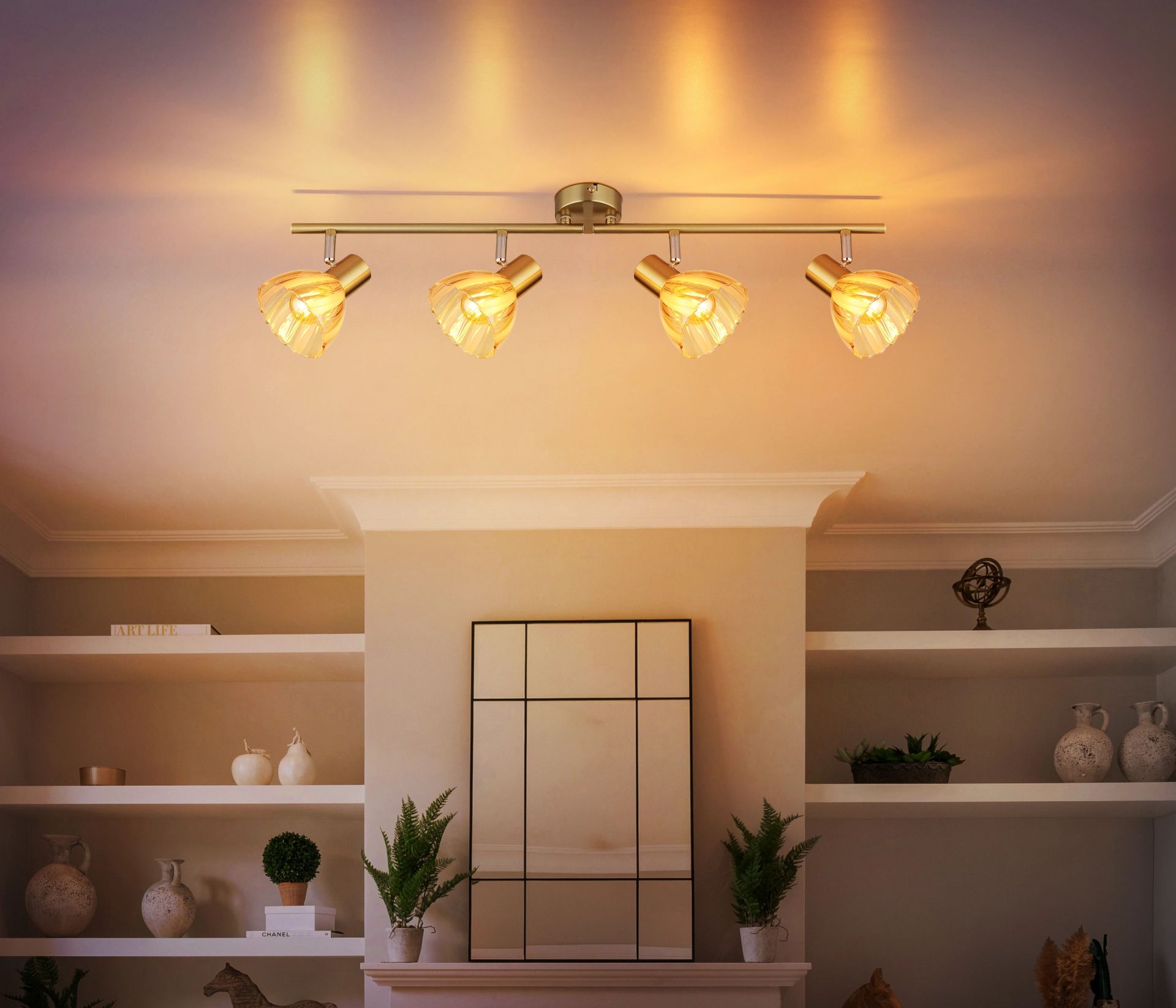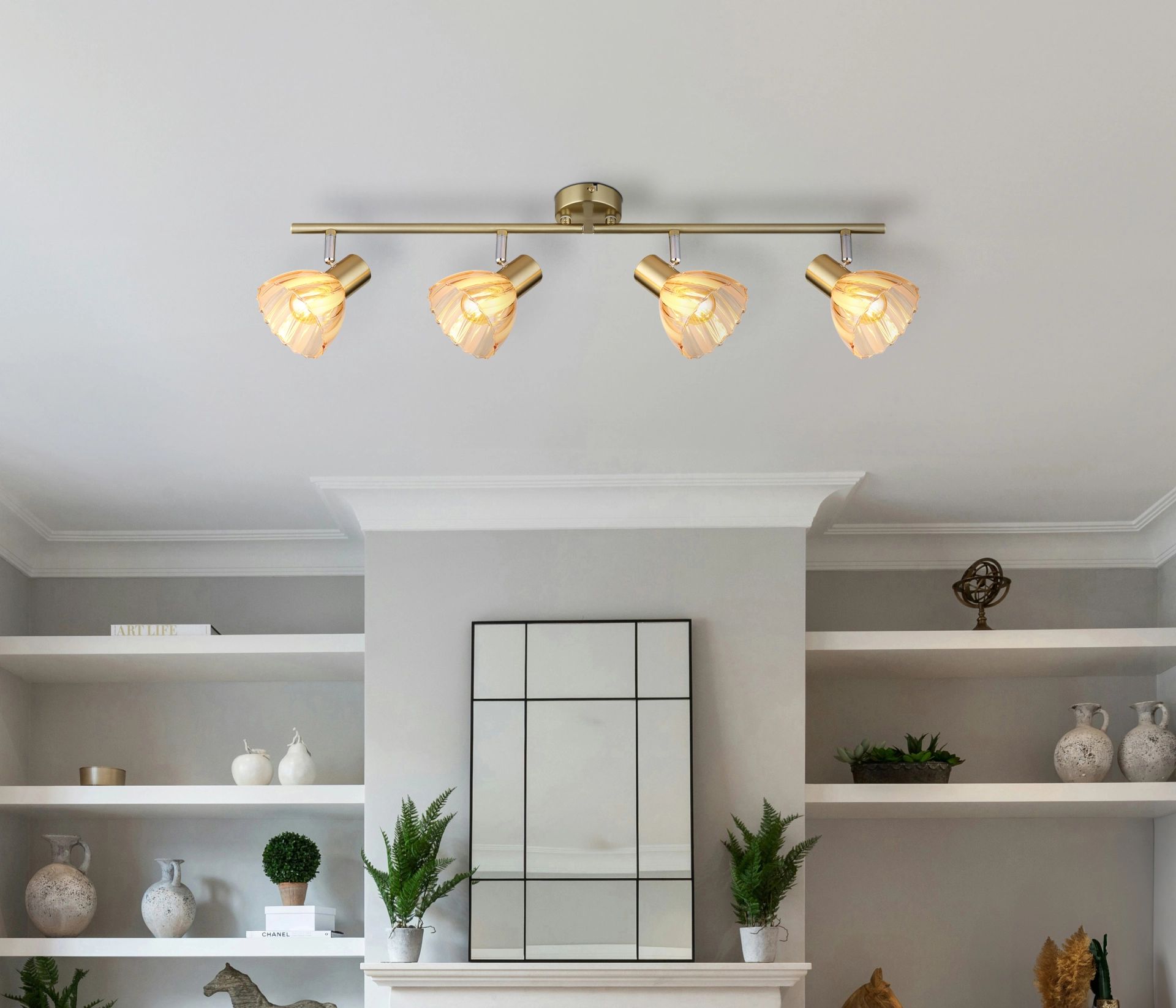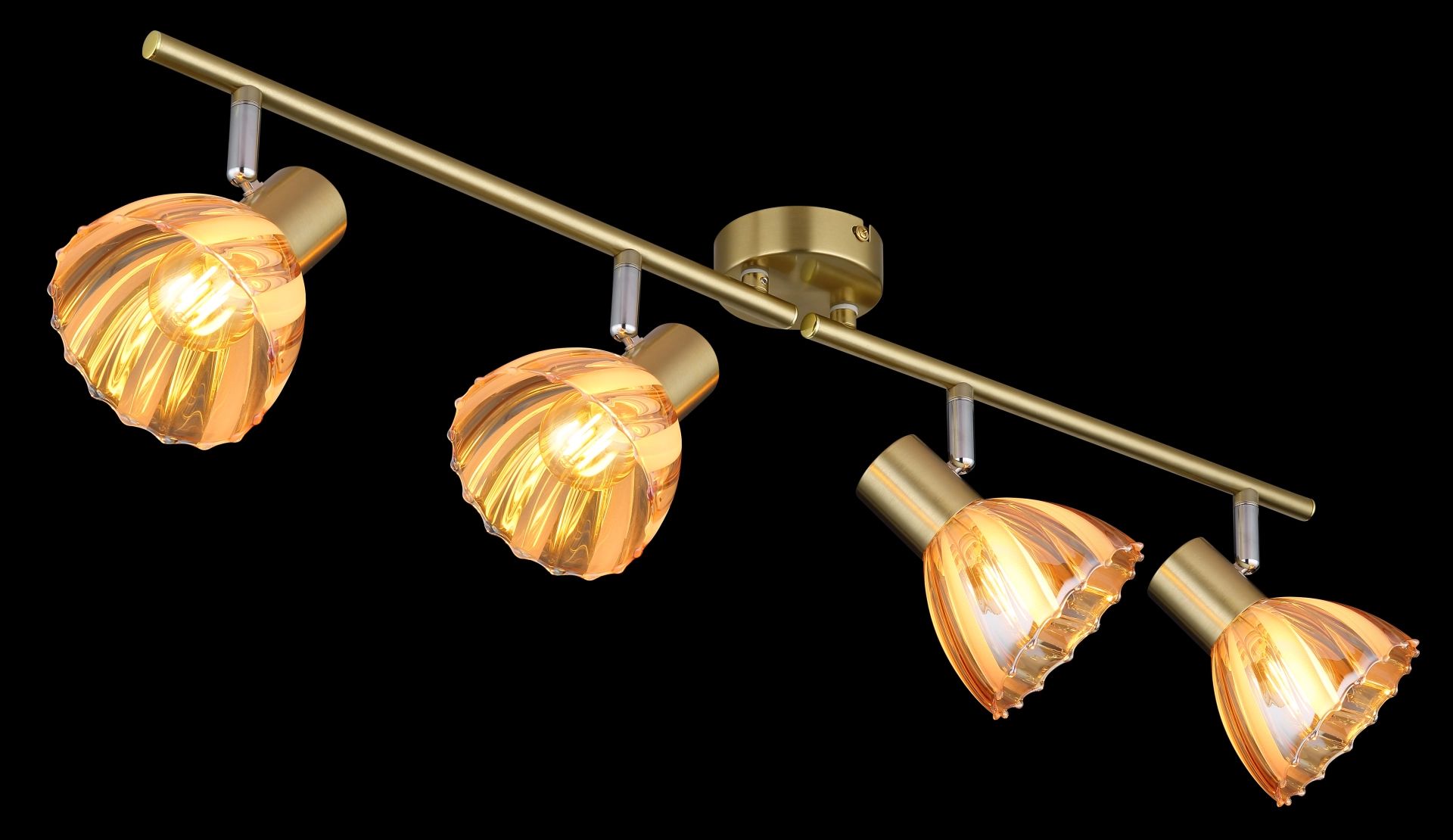 De ZACHERY spotlight is de ideale combinatie van elegantie en functionaliteit. Met twee verstelbare rechte armen kunt u het licht eenvoudig in de gewenste richting richten. De ronde kappen, gemaakt van satijn amberkleurig glas met stijlvolle decoratieve groeven, zorgen voor een optimale lichtverdeling en creëren een warme, uitnodigende sfeer in elke ruimte. Het bronzen, matte metaal en het chroom van het lichaam geven deze spotlight een chique uitstraling die perfect past in zowel moderne als klassieke interieurs.