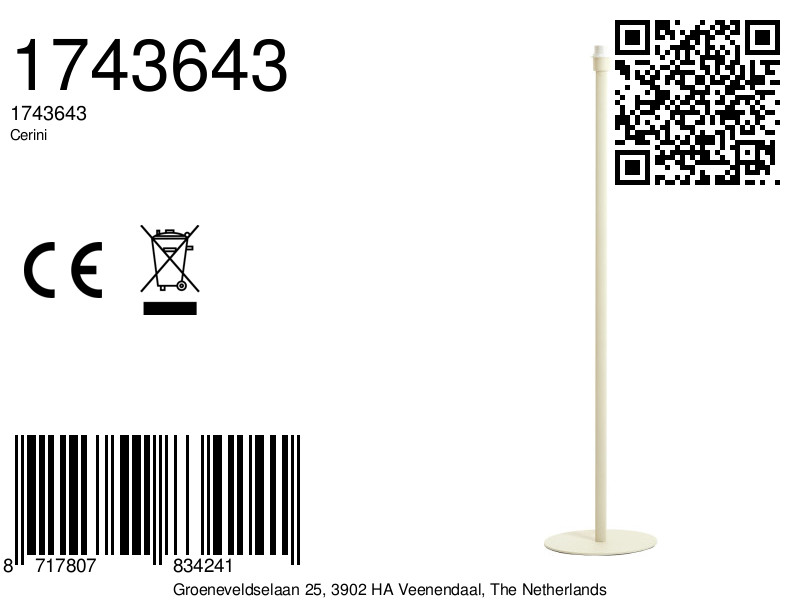 Cerini in crème brengt frisheid en elegantie in huis. De neutrale kleur maakt dat de lamp moeiteloos in lichte en serene interieurs past. De slanke vormgeving zorgt ervoor dat hij niet te aanwezig is, maar toch karakter toevoegt aan de ruimte. Met een kap naar keuze maak je van deze lamp een persoonlijk statement.De vloerlamp is 130 cm hoog, 30 cm lang en 20 cm breed. Hij is gemaakt van metaal in een zachte crème tint en wordt geleverd zonder lichtbron, zodat je zelf de sfeer kunt bepalen. De E27 fitting maakt hem geschikt voor verschillende soorten lichtbronnen. Met de schakelaar in het snoer bedien je de lamp eenvoudig. Combineer hem met een dimbare lichtbron en externe dimmer om de lichtsterkte naar wens aan te passen. De lamp heeft een IP20-classificatie en is bedoeld voor gebruik binnenshuis. Inclusief snoer en 2 jaar garantie.