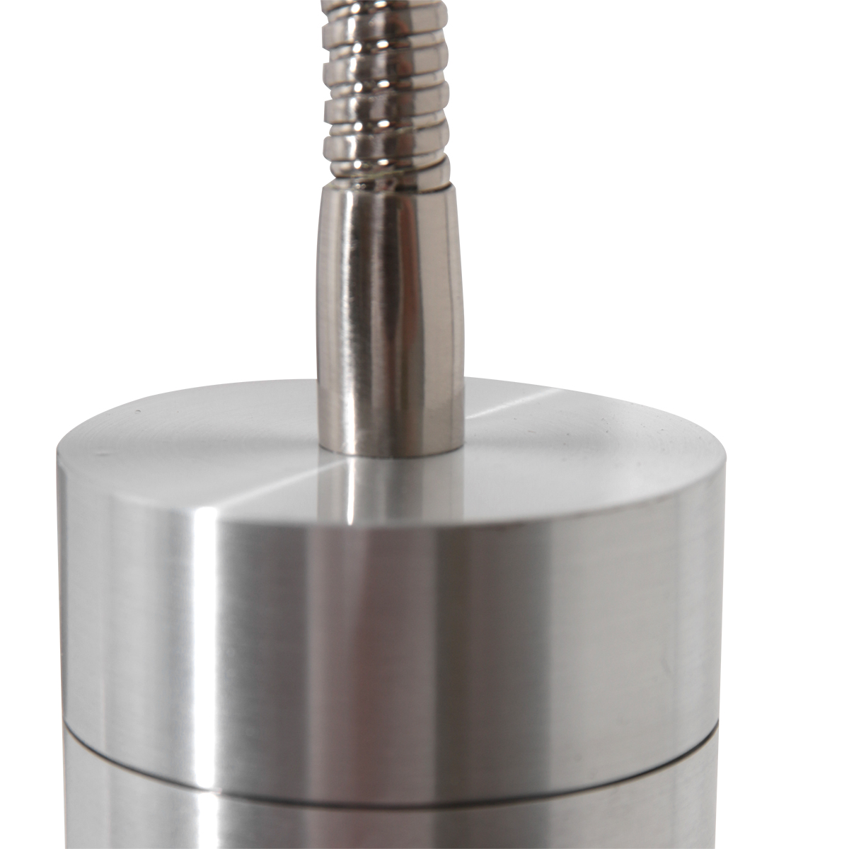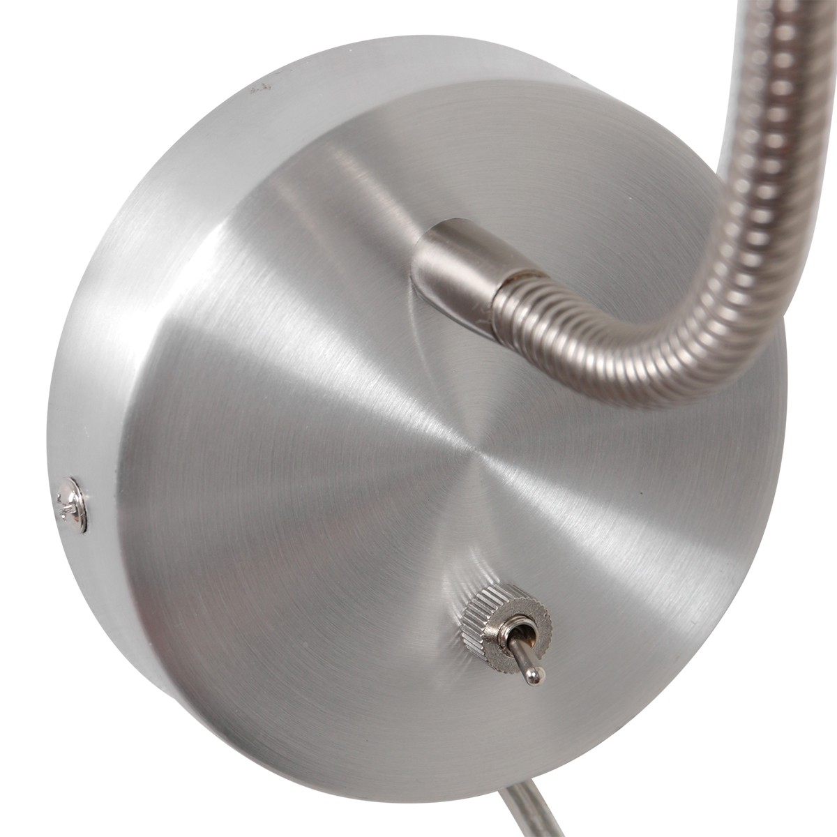 Deze flexibele wandlamp van Mexlite heeft een kleine ronde kap. De totale lengte van de arm is vijfentwintig centimeter en de zilveren kap is acht bij vijf centimeter. Door het bescheiden uiterlijk past deze lamp goed op de badkamer of slaapkamer. In beide gevallen kun je de lamp naast een spiegel monteren en deze zo instellen dat je de juiste lichtval hebt.