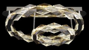 Vervaardigd uit hoogwaardig verchroomd metaal gecombineerd met rookkleurige acrylkristallen, verrijkt deze elegante plafondlamp elke moderne woonruimte met zijn gestileerde aanwezigheid. Met een indrukwekkende diameter van 550mm en een hoogte van 240mm, is deze lamp prachtig als statement stuk in ruimtes met hoge plafonds. Een energy-efficient 40W LED-lamp levert een helderheid van 4500 lm, uitstralend in een aangenaam warm licht van 4000K kleurtemperatuur. De ingebouwde LED-technologie zorgt bovendien voor een duurzame en milieuvriendelijke verlichtingsoplossing.