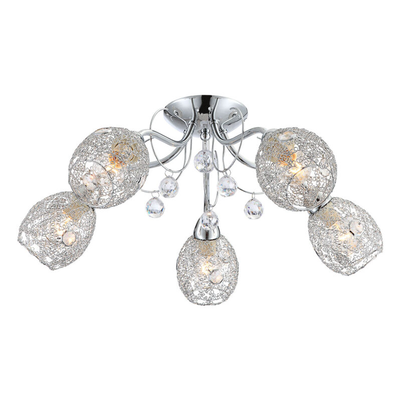 Met een strak ontwerp en een indrukwekkende diameter van 54 cm, zorgt de Kordula ronde plafondlamp voor een onmiskenbare aanwezigheid in elke kamer. De hoogwaardige chromen basis en vijf sierlijk gebogen armen, uitgerust met vlekken en chromen roosters, stralen een elegante glans uit. Met zijn hangende glas- en acrylkristallen vormt deze lamp een betoverende lichtshow. De verlichting is aanpasbaar met vijf E14 lampen, tot 40 watt per stuk, waarbij LED-lampen worden aanbevolen voor optimale energie-efficiëntie en duurzaamheid.