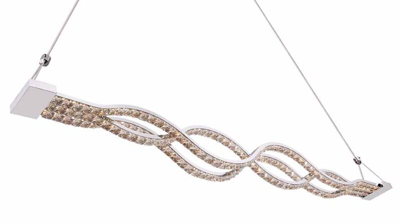 Betover je interieur met de PILLA hanglamp, een dimbaar binnenlicht dat schittert dankzij verleidelijke heldere glazen kristallen. Deze elegante chromen verlichtingsoplossing bevat drie gebogen balken en een krachtige 30-watt LED-lamp die maar liefst 2345 lumen aan licht produceert. De kleurtemperatuur is regelbaar, variërend van een warme 3000 Kelvin tot een koele 6000 Kelvin, waardoor je de sfeer naar eigen smaak kunt aanpassen. Bovendien bevat deze lamp een handige afstandsbediening en geheugenfunctie die je laatste instellingen opslaat voor het gemak. Met zijn 140cm lengte, levert deze in het oog springende hanglamp verbluffend, sterk licht voor elke ruimte.