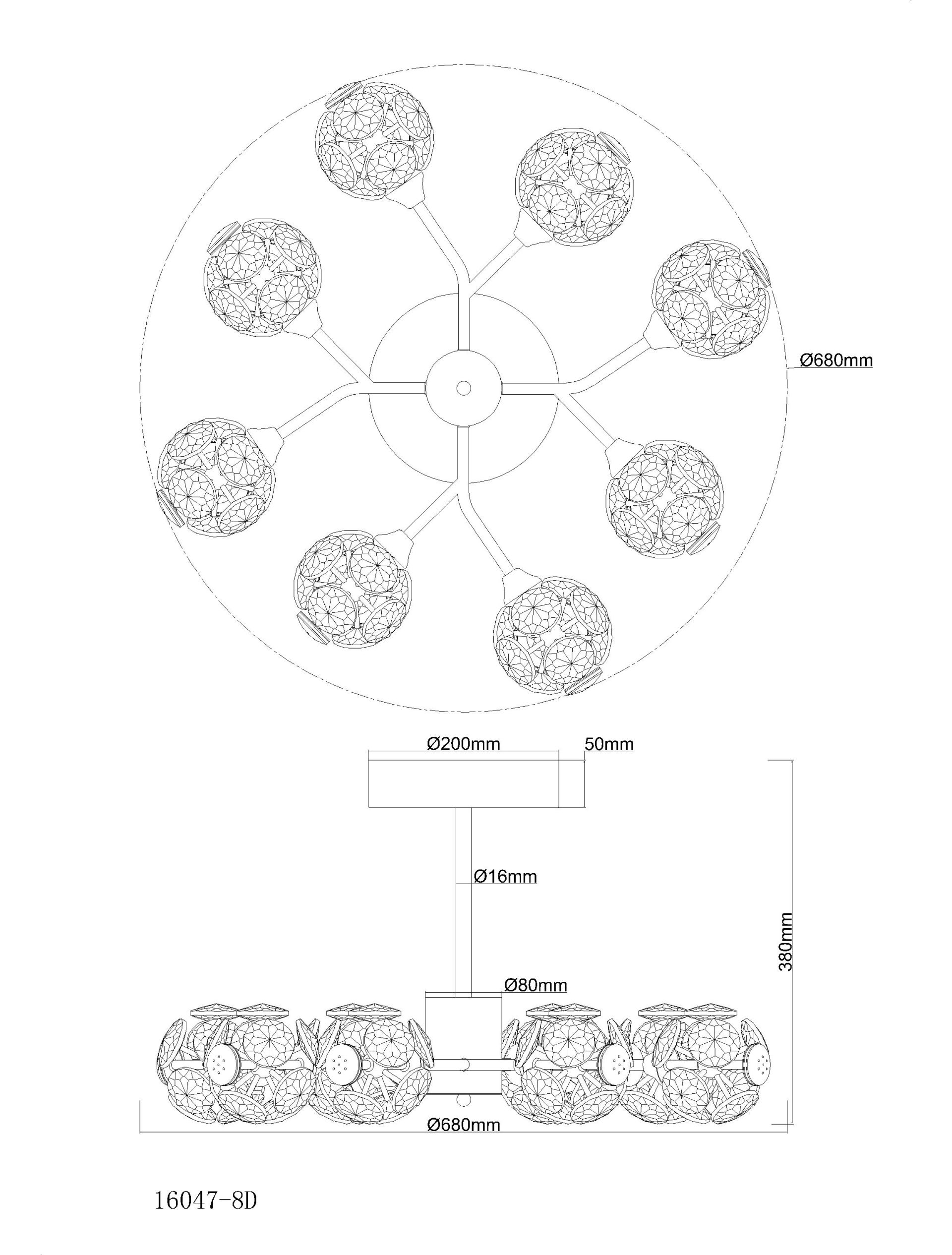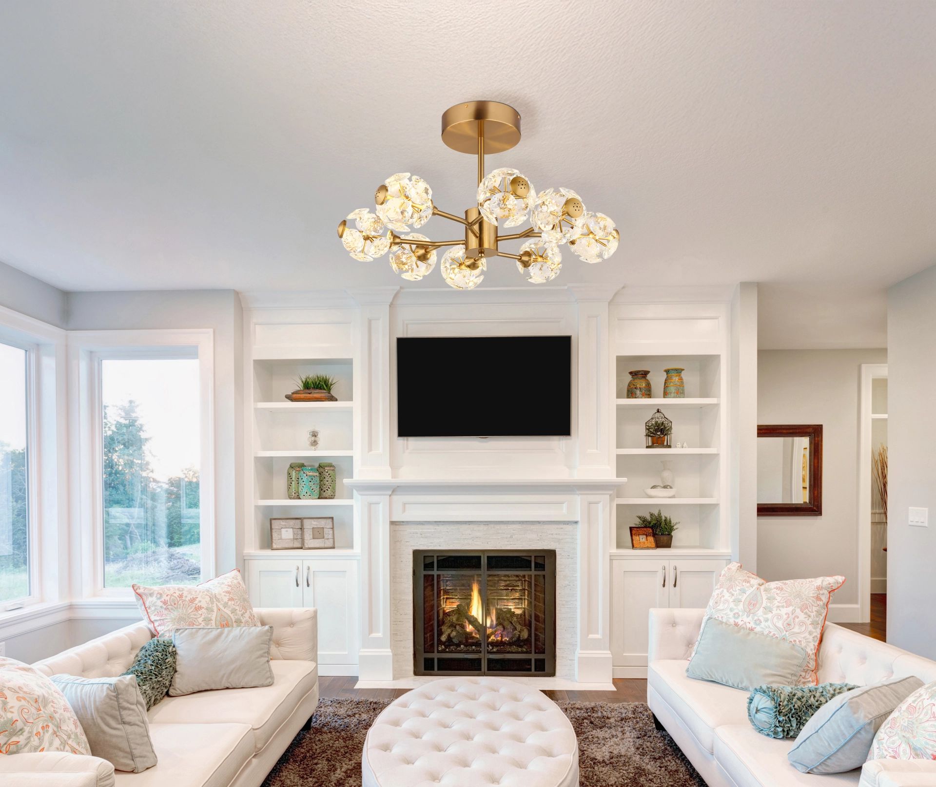 De VIRINA plafondlamp is een luxueus verlichtingsarmatuur dat de esthetiek van uw woning verhoogt met zijn verfijnde ontwerp en hoogwaardige materialen. Het elegante gouden metalen frame bevat acht armen, waarop schitterende bollen van helder K9-kristal zijn geplaatst. Deze kristallen zorgen ervoor dat het licht op een unieke manier wordt gereflecteerd, wat bijdraagt aan een warme en uitnodigende sfeer in uw ruimte.