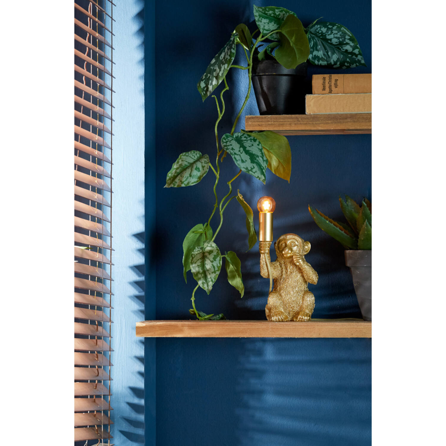 Voeg een speelse flair toe aan je interieur met de gouden aap tafellamp van Light & Living Monkey. Deze lamp, gemaakt van kunststof, is ideaal voor eetkamers, kinderkamers, slaapkamers en woonkamers. Met een breedte van 12 cm en een hoogte van 23 cm biedt hij een unieke en landelijke uitstraling. Creëer een vrolijke en levendige sfeer met deze bijzondere tafellamp.