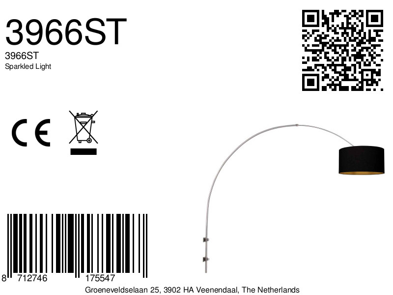 De grijze wandlamp met boog uit de Sparkled Light-serie van Steinhauer voegt een subtiele en moderne uitstraling toe aan je interieur. Het armatuur, vervaardigd uit geborsteld metaal, heeft een verstelbare diepte van 130 tot 175 cm en een totale hoogte van 145 cm. De kantelbare E27-fitting zorgt voor optimale lichtinval. Geleverd met een zwart linnen kap met een goudkleurige binnenkant, diameter 40 cm, hoogte 20 cm. Inclusief snoer van 200 cm, schakelaar en 2 jaar fabrieksgarantie.
