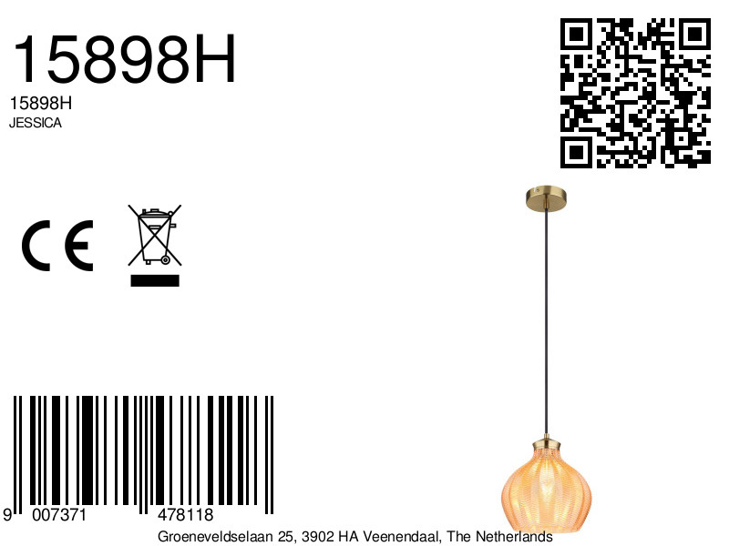 Het warme amberkleurige licht samen met de subtiele groeven in het glas creëren een gezellige sfeer en voegen stijlvolle accenten toe aan uw ruimte. Dankzij de combinatie van hoogwaardige materialen en doordacht design is de “JESSICA” hanglamp een ware verrijking voor elk thuis. Geniet van de perfecte balans tussen functionaliteit en schoonheid, en laat deze lamp de blikvanger van uw woonkamer of eetruimte zijn.