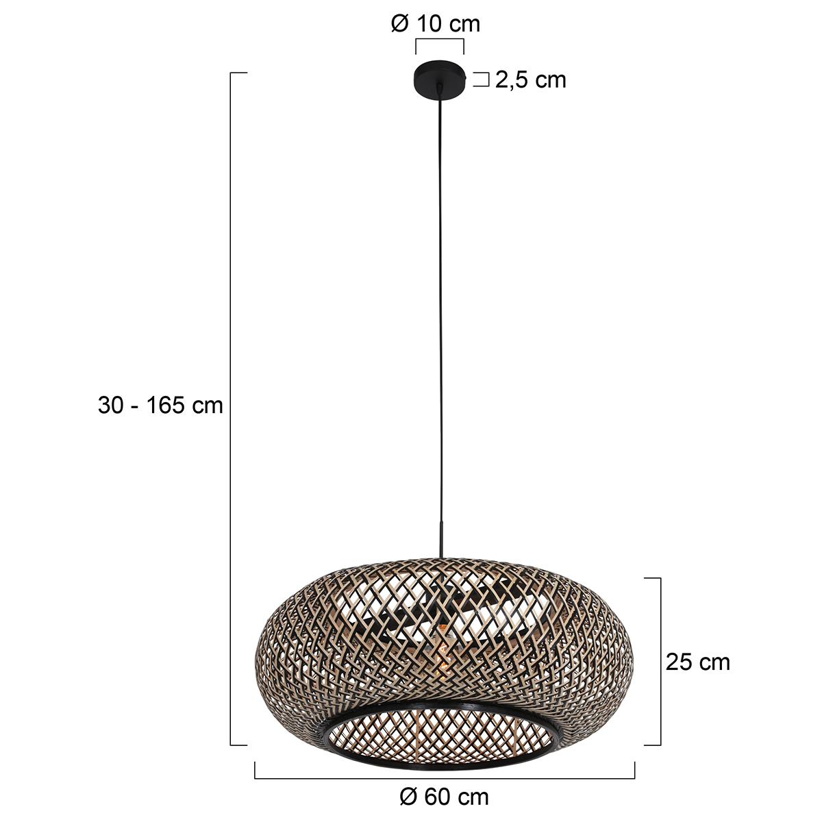 De HaloSwap 4533ZW combineert een zwarte pendel met een handgevlochten bamboekap in een warm tweekleurig ontwerp. De kap van 60 cm diameter creëert een sfeervol lichtspel dankzij de open structuur, terwijl de natuurlijke kleurvariaties zorgen voor een organische uitstraling. Dit maakt de lamp geschikt voor uiteenlopende interieurs, van modern tot oosters en natuurlijk. Het geheel vormt een stijlvolle blikvanger die elke ruimte warmte en elegantie geeft.