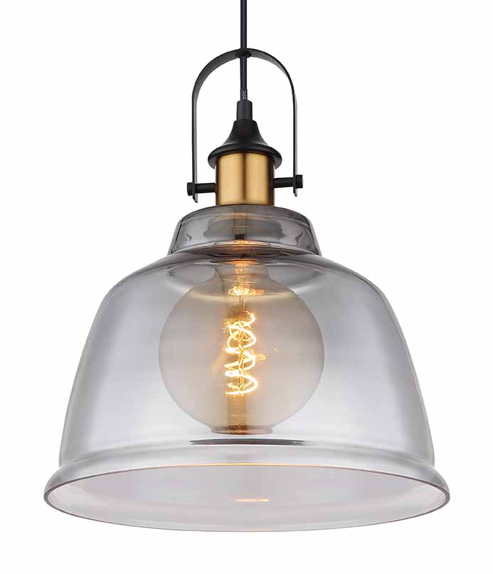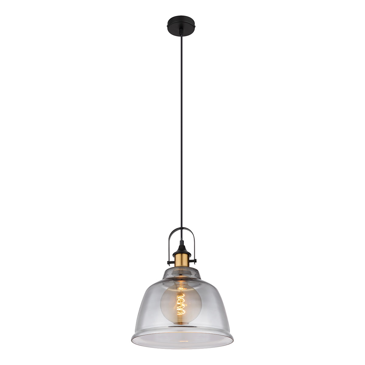 Deze hanglamp uit de Dorothea-serie (Ø 30 cm) maakt indruk met zijn prachtige design van matzwart metaal. Het bestaat uit een E27-aansluiting omlijst door messing, die is voorzien van een welgevormde gebogen, rokerige glazen kap en tot 120 cm van het plafond aan een zwarte kabel hangt. Deze kunt u uitrusten met een geschikte lichtbron naar keuze, die u de mogelijkheid geeft om lichtkleur en helderheid individueel te bepalen. Met verschillende modellen van dezelfde serie kunt u een stijlvolle sfeer in uw interieur creëren.