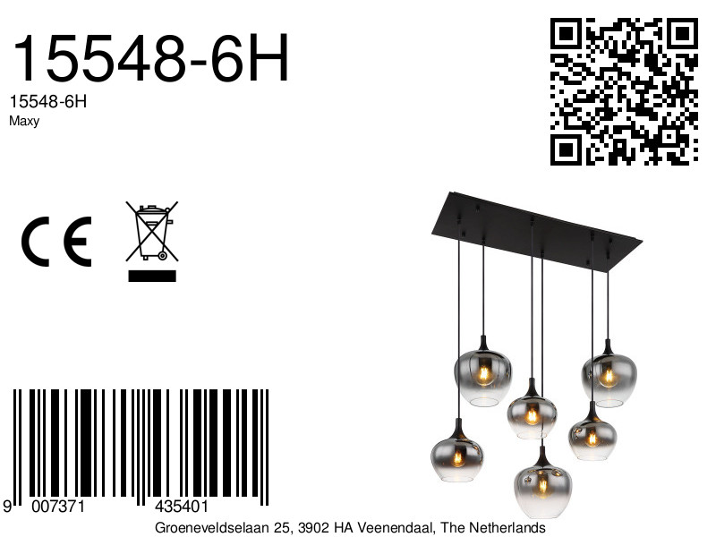 Deze mooie hanglamp inspireert met een geweldig design. Zes kabels in verschillende lengtes, tot 1,2 m, steken uit een rechthoekige matzwarte plafondbevestiging (86 x 42 cm) en eindigen in een E27 fitting met elegante rookglazen kappen. Met de E27-fittingen kunt u zelf de lichtkleur en helderheid bepalen tot een maximaal vermogen van 40 watt. Vanwege de lange levensduur en energiebesparing raden we LED-lampen aan.