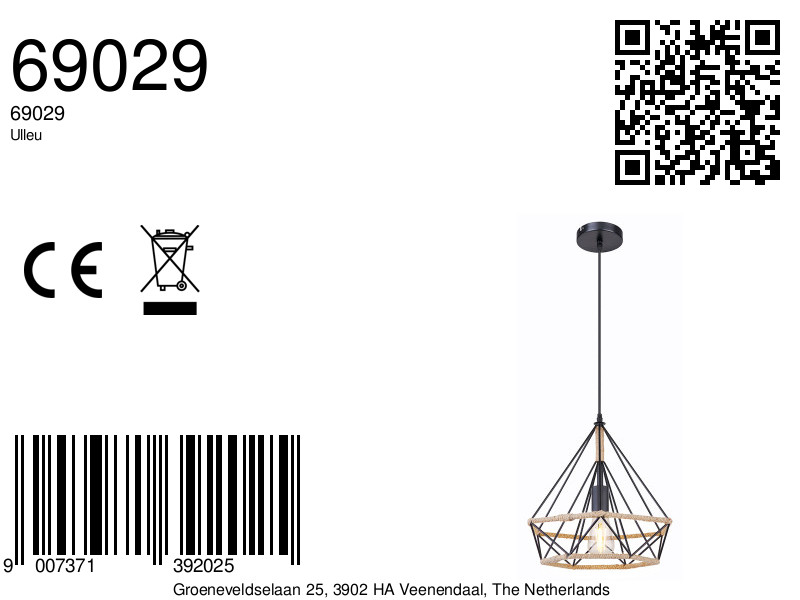 Geef je interieur een sfeervolle twist met de ULLEU hanglamp. Het ontwerp kenmerkt zich door een aantrekkelijke combinatie van zwart metaal en bruin henneptouw, uitgevoerd in een unieke ruitvormige kap van 38cm diameter. Deze unieke binnenverlichting, met een lengte van 150cm, biedt volledige personalisatie in lichtintensiteit en kleur dankzij de E27 fitting voor een maximaal 60W lamp (niet inbegrepen). Voor duurzame prestaties raden we het gebruik van LED-lampen aan. Versterk de esthetiek van je woonruimte verder met meer items uit de ULLEU reeks.