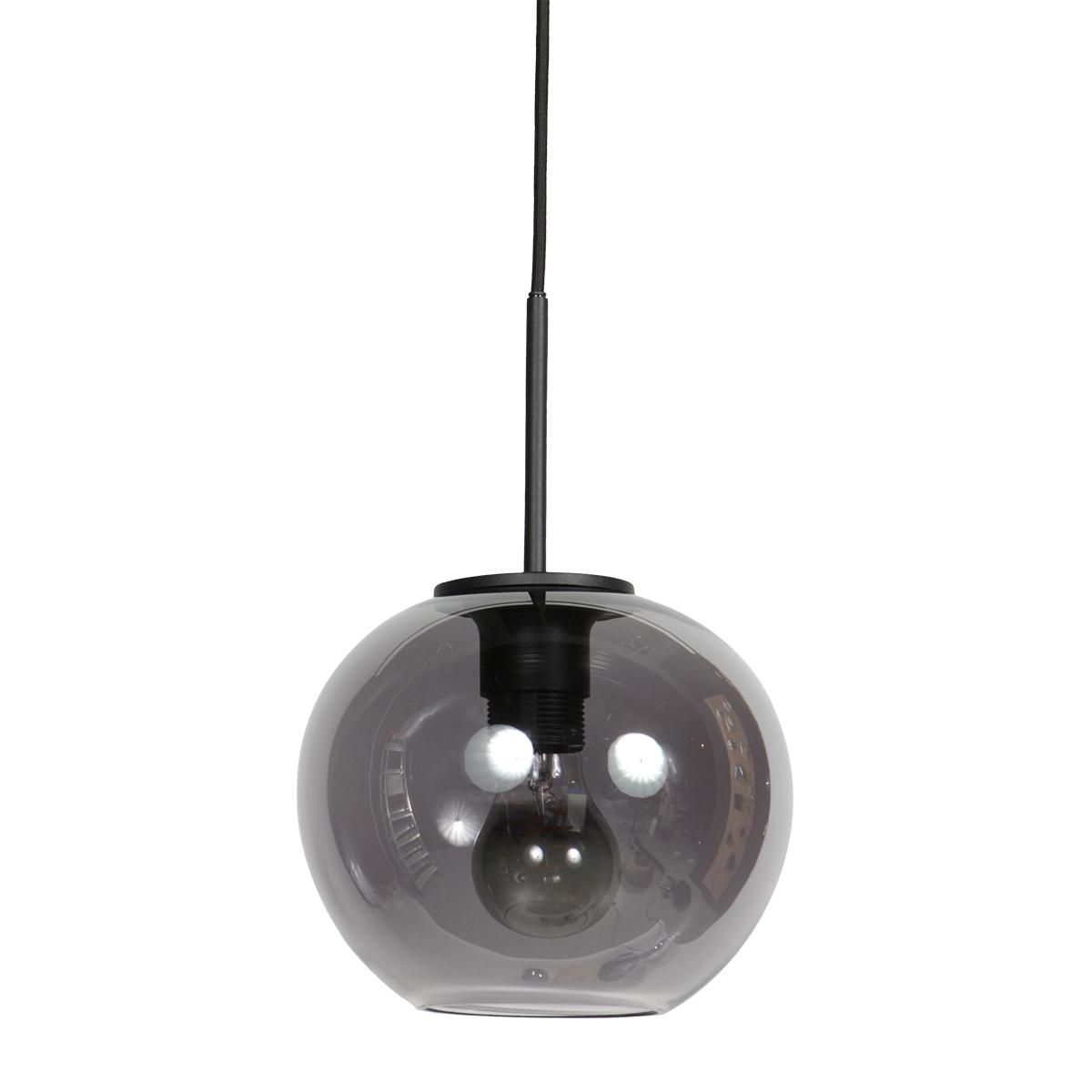 Deze zwarte hanglamp is uitgerust met een elegante, bolvormige kap van smoke kleurig glas met een diameter van 20 cm en een hoogte van 16,6 cm. Het warme, getinte glas verspreidt het licht op subtiele wijze en creëert direct een gezellige sfeer. Perfect als stijlvolle toevoeging boven een eettafel, kookeiland of bar – zowel solo als in een groep.