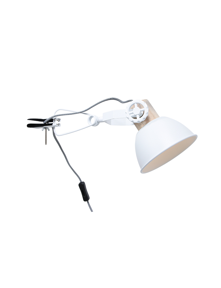 Graag willen we je deze industriële richtspot met klem aanraden. Een opvallende spot alsook een praktische lamp. Je kunt jouw favoriete lamp overal mee naar toe nemen. Je klemt hem eenvoudig vlakbij een wandcontactdoos vast aan een tafel of stoel. “Gearwood” van Mexlite is een mix van hout en zachtgrijs metaal. Saillant detail, let op de radertjes waarmee je de lamp kunt verstellen.