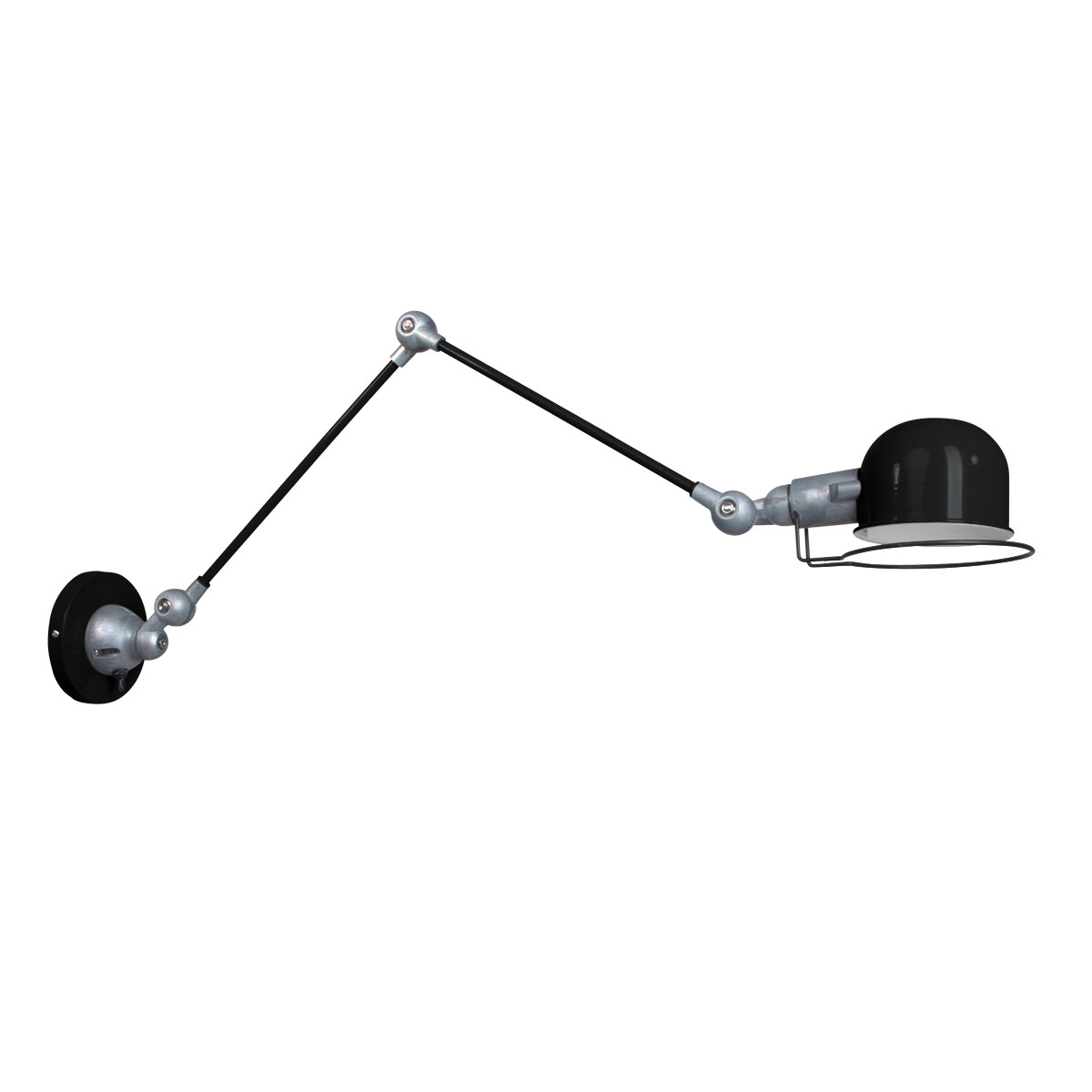Zwarte industriële wandlamp met scharnierarm uit de Davin-serie, een stijlvolle toevoeging aan elk interieur. De metalen kap van 10,5 cm breed en 8 cm hoog heeft een witte binnenkant voor een optimale lichtreflectie. De flexibele arm zorgt ervoor dat het licht eenvoudig in de gewenste richting kan worden gericht. Geschikt voor E14 lichtbronnen tot 40 watt, met een aan/uit schakelaar op de wandplaat. Wordt geleverd met twee jaar fabrieksgarantie.