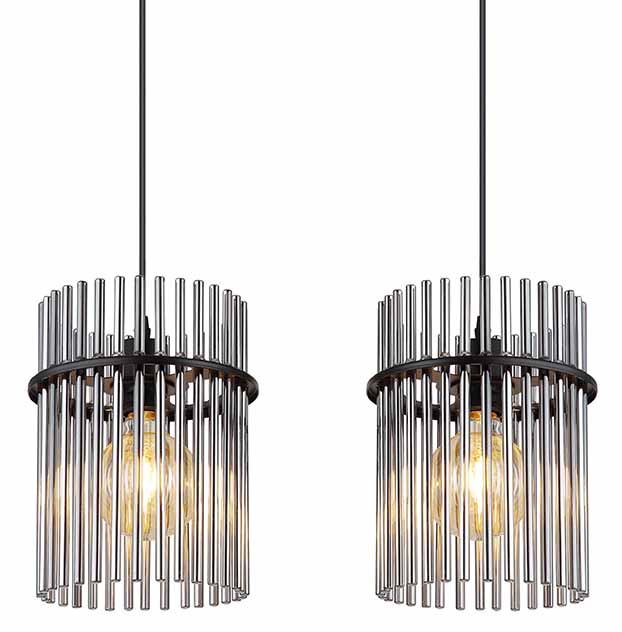 Deze elegante hanglamp uit de Gorley serie inspireert met zijn moderne design. Vier zwarte kabels tot 1,4 m lang lopen van een rechthoekige plafondmontage naar een E27-aansluiting elk. Deze zijn voorzien van welgevormde cilindrische tinten van glazen staafjes en geven je de mogelijkheid om zelf de lichtkleur en helderheid te bepalen tot een maximaal vermogen van 60 watt. Vanwege de lange levensduur en energiebesparing raden we LED-lampen aan.