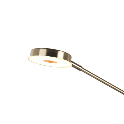 Voeg klassieke elegantie toe aan je werkplek of woonkamer met de messing vloerlamp met leeslamp uit de Barrie-serie. Deze lamp met ingebouwde LED-verlichting en touchdimmer biedt stijlvolle en functionele verlichting.