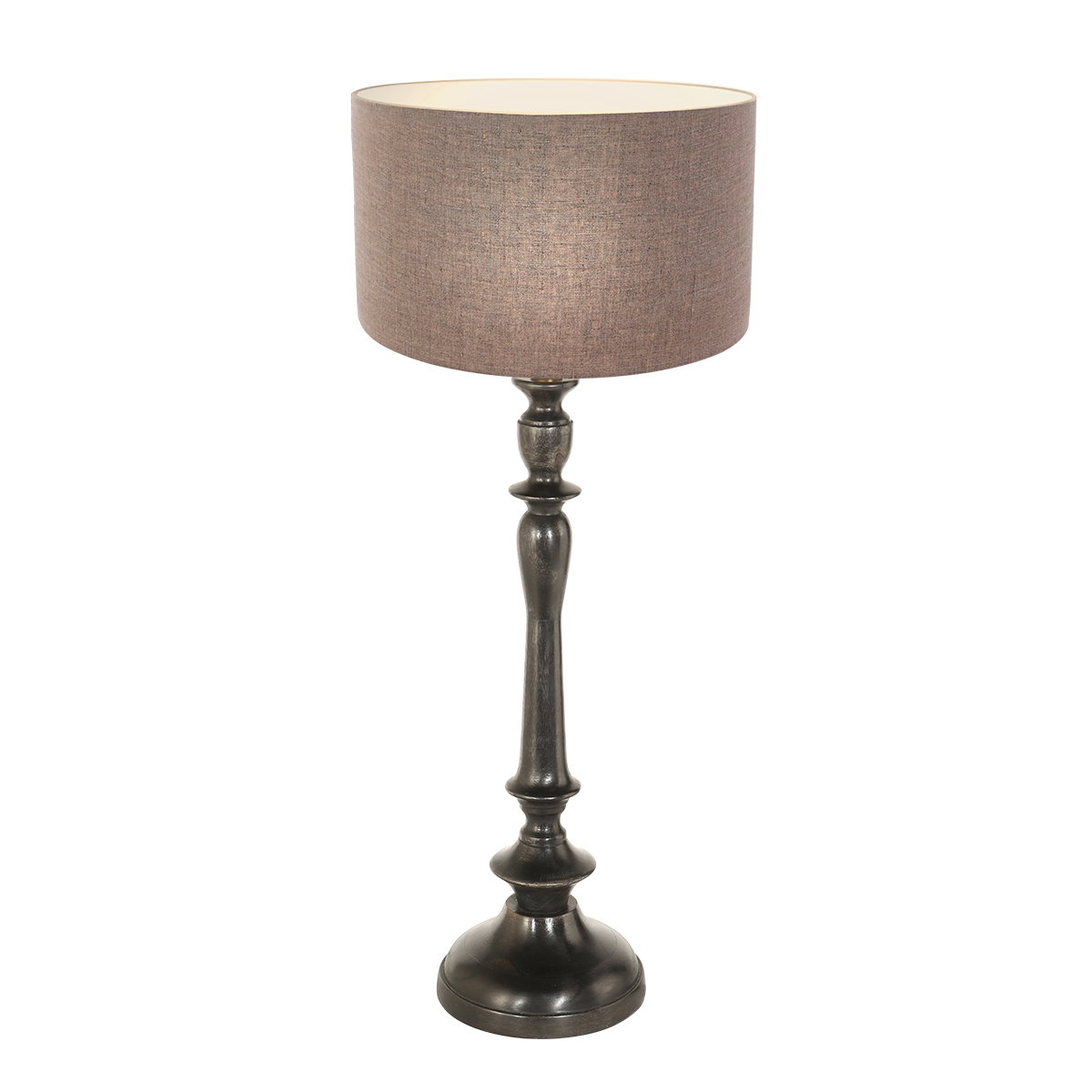 Klassieke ronde tafellamp uit de Bois-serie van Anne Lighting, uitgevoerd met een zware houten voet en een grof grijze linnen kap. De diepe donkerbruine voet, bijna zwart van kleur, voegt een warme en tijdloze uitstraling toe aan een landelijk interieur. Dankzij de verstelbare en kantelbare E27-fitting kan de kap altijd optimaal gepositioneerd worden. Met een hoogte van 51 cm en een kapdiameter van 30 cm is deze lamp perfect voor sfeerverlichting in de eetkamer of woonkamer. Voorzien van een snoerschakelaar en 2 jaar garantie.